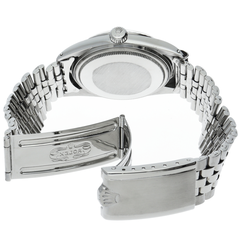 ロレックスのドレスウォッチの王道「デイトジャスト」。ホワイトゴールドとステンレスの組み合わせが高級感を感じさせる1本です。プラスチック風防仕様。