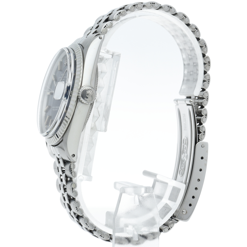 ロレックスのドレスウォッチの王道「デイトジャスト」。ホワイトゴールドとステンレスの組み合わせが高級感を感じさせる1本です。プラスチック風防仕様。