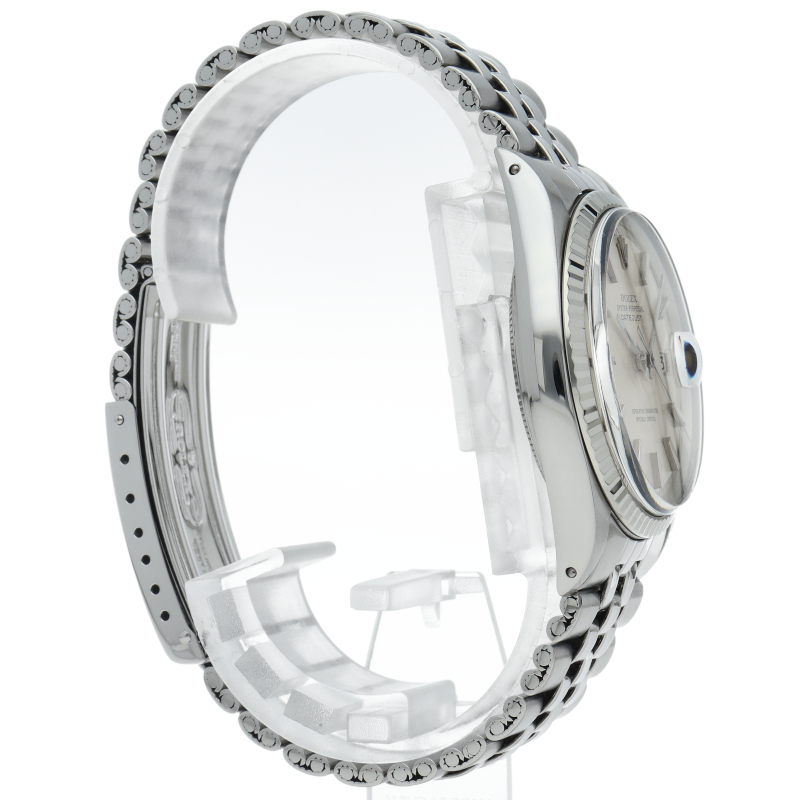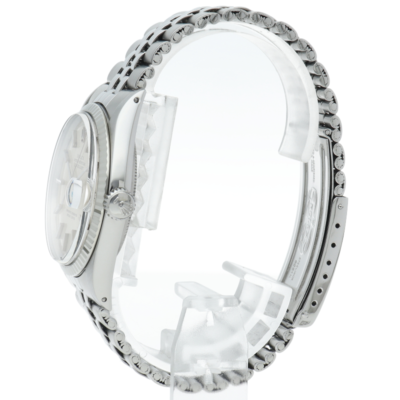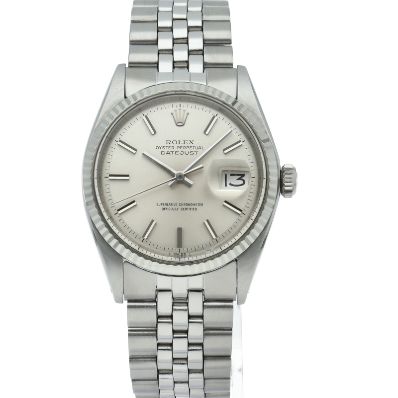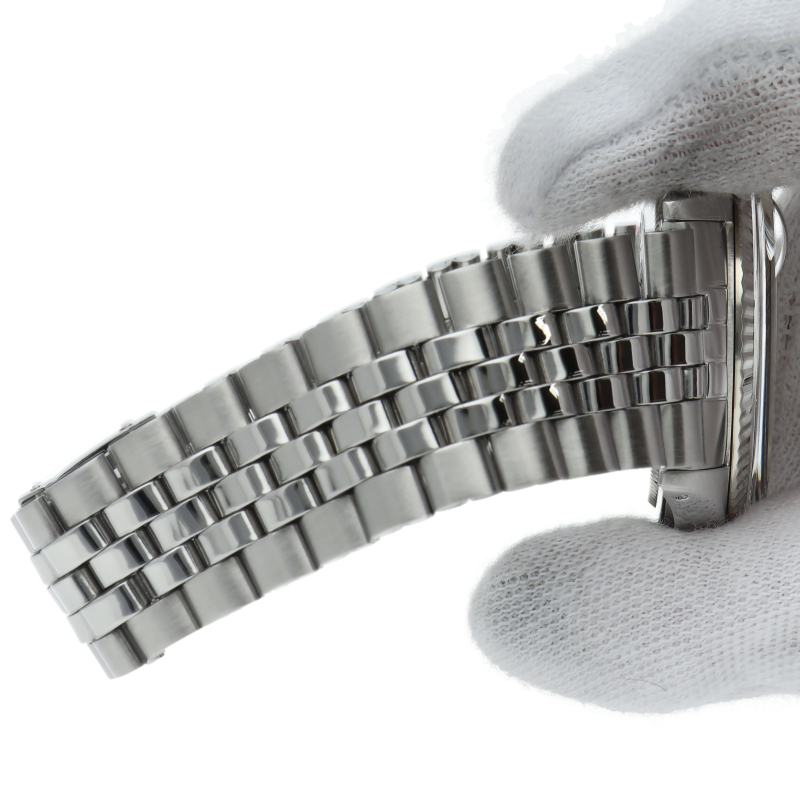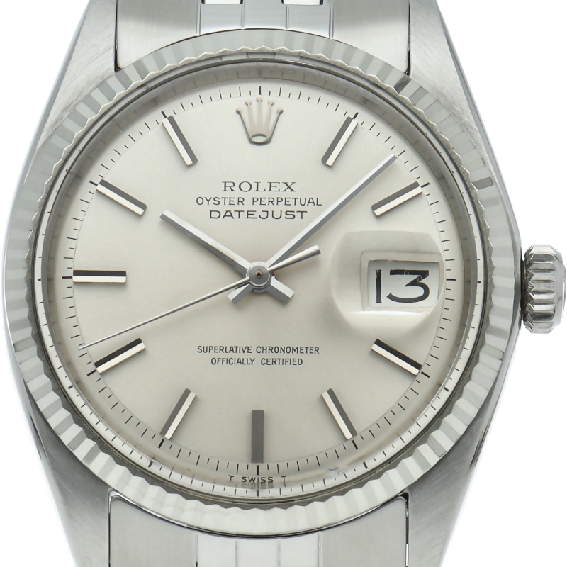 ロレックスのドレスウォッチの王道「デイトジャスト」。ホワイトゴールドとステンレスの組み合わせが高級感を感じさせる1本です。プラスチック風防仕様。
