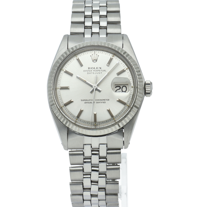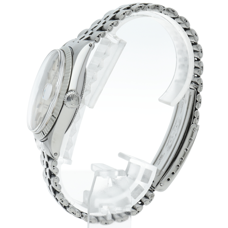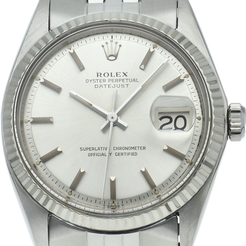 ロレックスのドレスウォッチの王道「デイトジャスト」。ホワイトゴールドとステンレスの組み合わせが高級感を感じさせる1本です。プラスチック風防仕様。