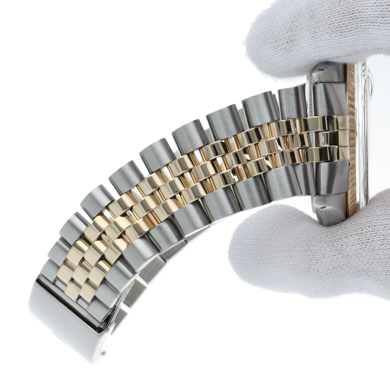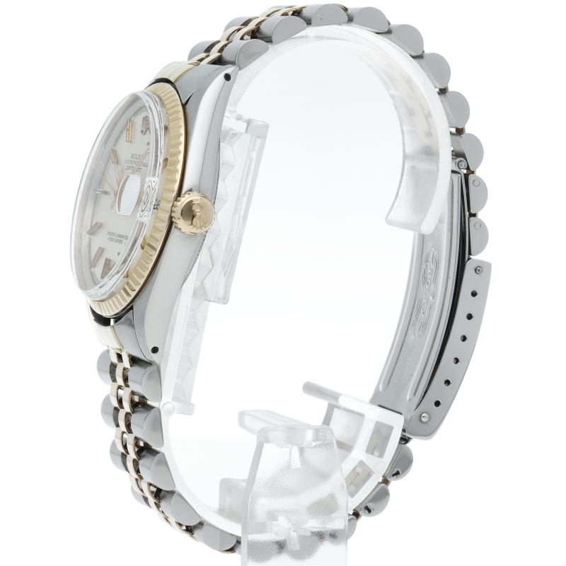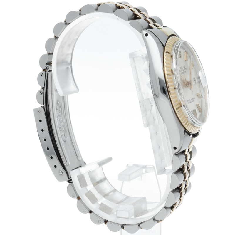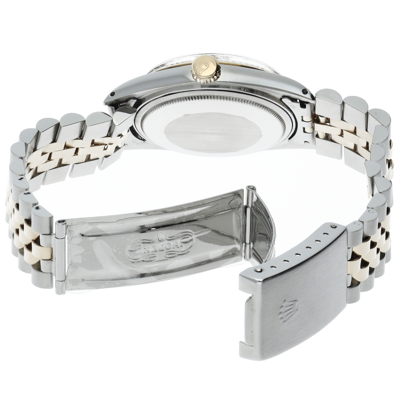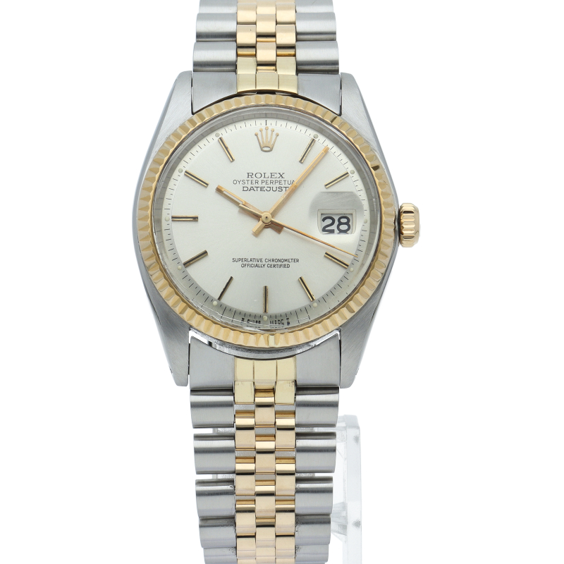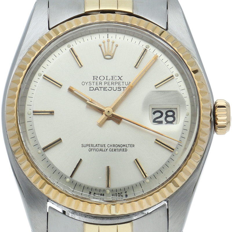 ロレックスのドレスウォッチの王道「デイトジャスト」。ホワイトゴールドとステンレスの組み合わせが高級感を感じさせる1本です。プラスチック風防仕様。クロノメーター表記の中央の空間が揃っている「センタースプリット」となっています。1601/3。