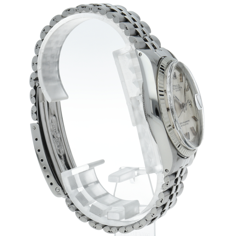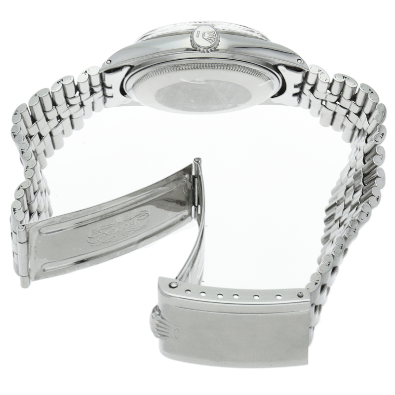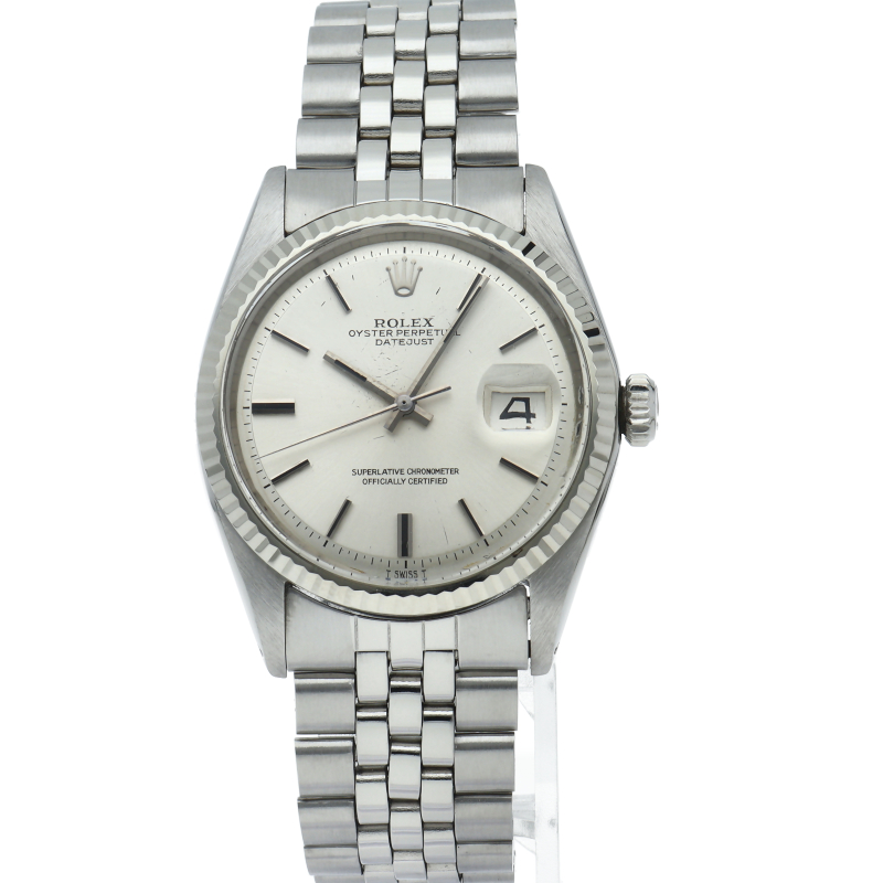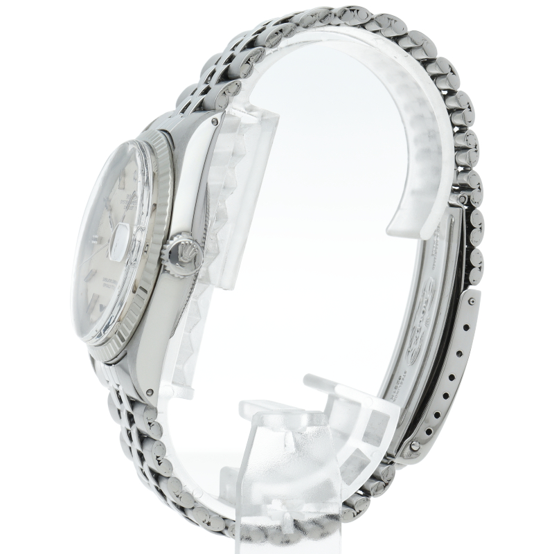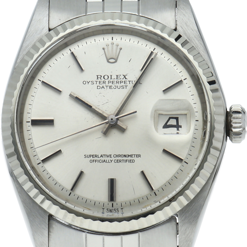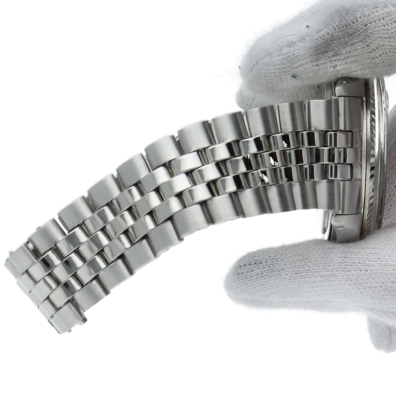 ロレックスのドレスウォッチの王道「デイトジャスト」。ホワイトゴールドとステンレスの組み合わせが高級感を感じさせる1本です。プラスチック風防仕様。