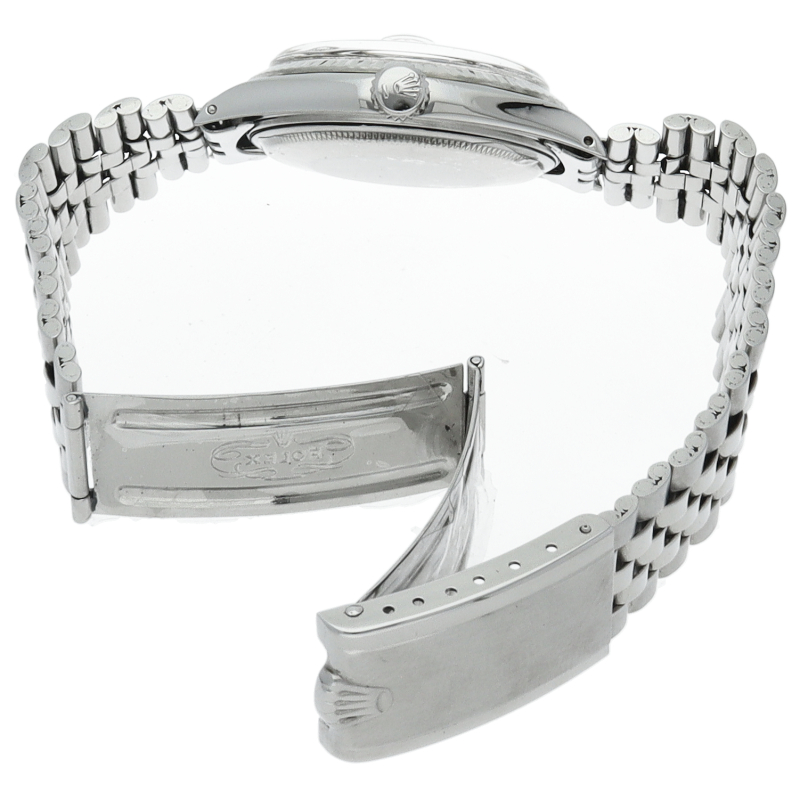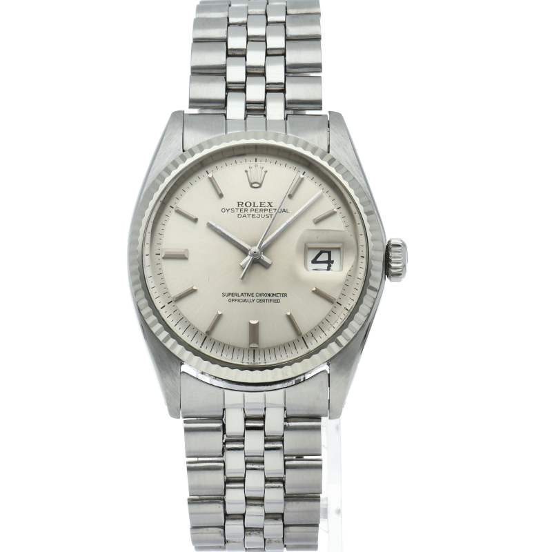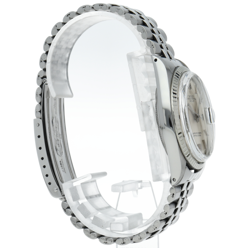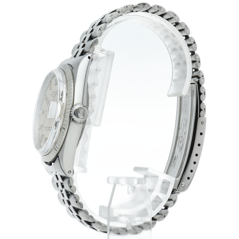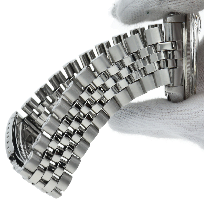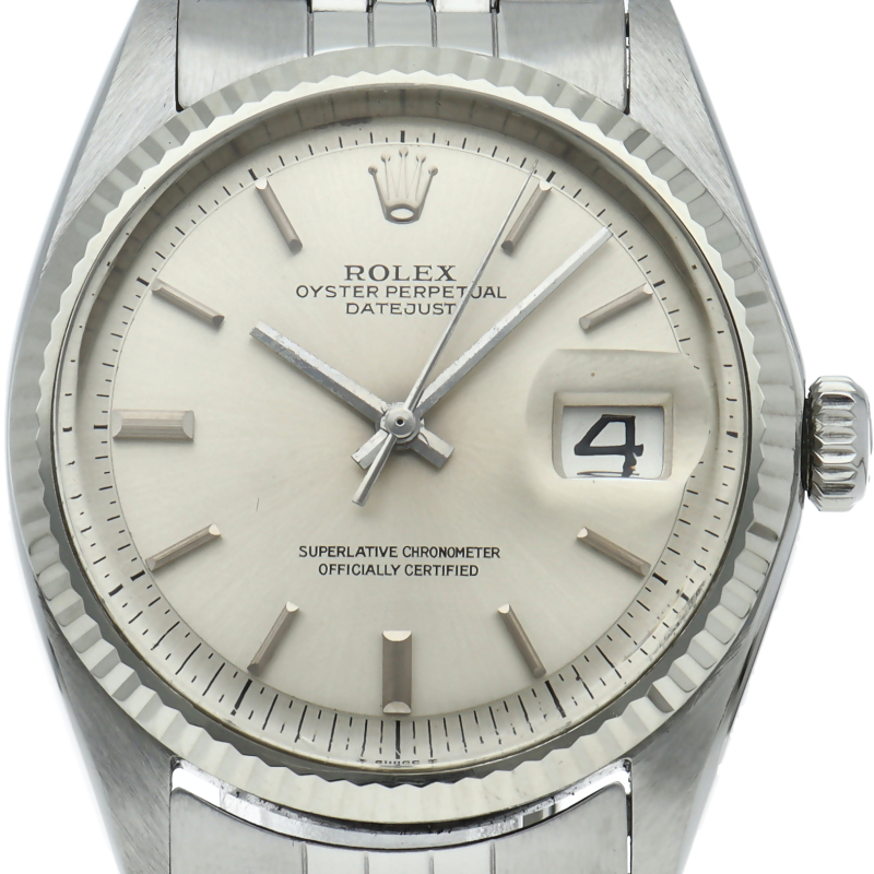 ロレックスのドレスウォッチの王道「デイトジャスト」。ホワイトゴールドとステンレスの組み合わせが高級感を感じさせる1本です。プラスチック風防仕様。