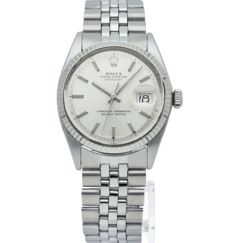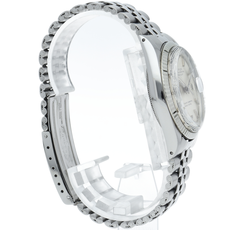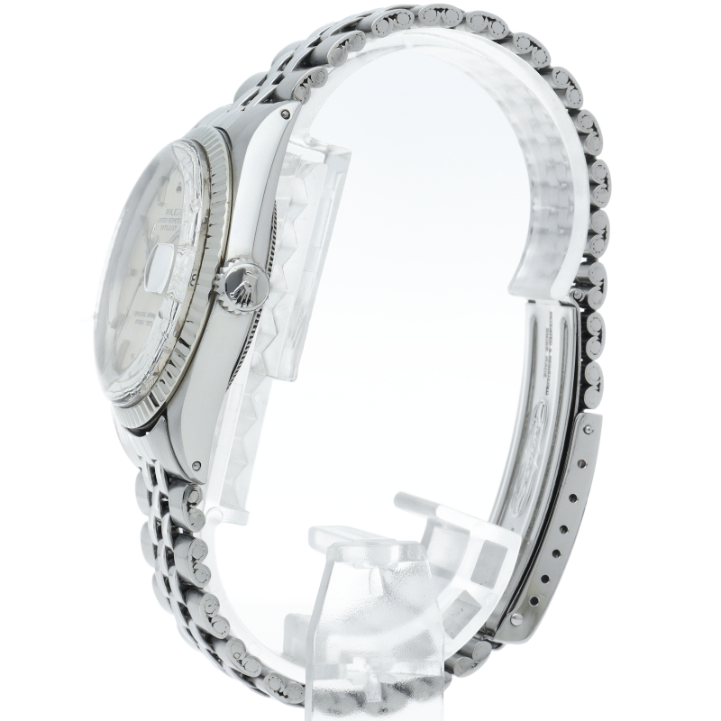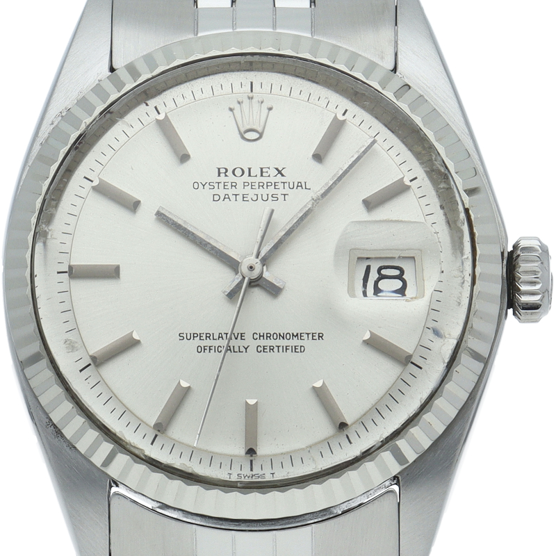 ロレックスのドレスウォッチの王道「デイトジャスト」。ホワイトゴールドとステンレスの組み合わせが高級感を感じさせる1本です。プラスチック風防仕様。