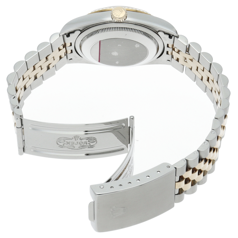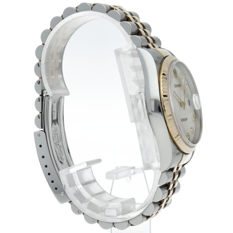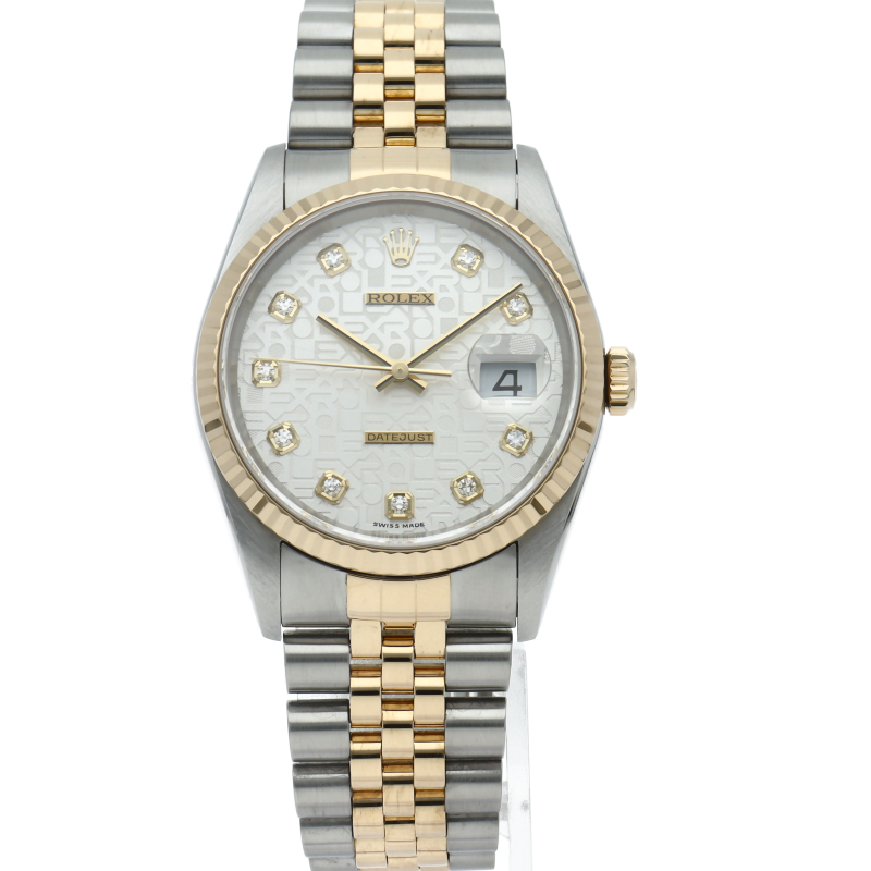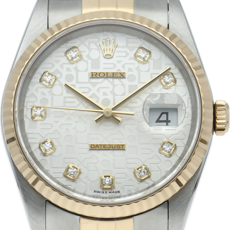 ロレックスのドレスウォッチで幅広い年齢層に愛されている「デイトジャスト」。イエローゴールドとステンレスのコンビ仕様に10Pダイヤが施されております。