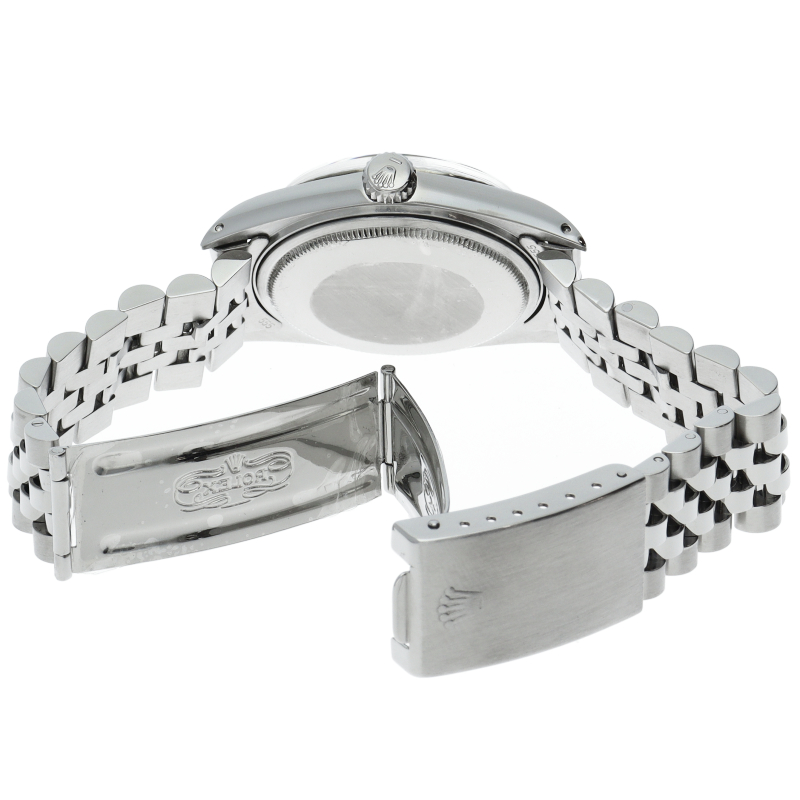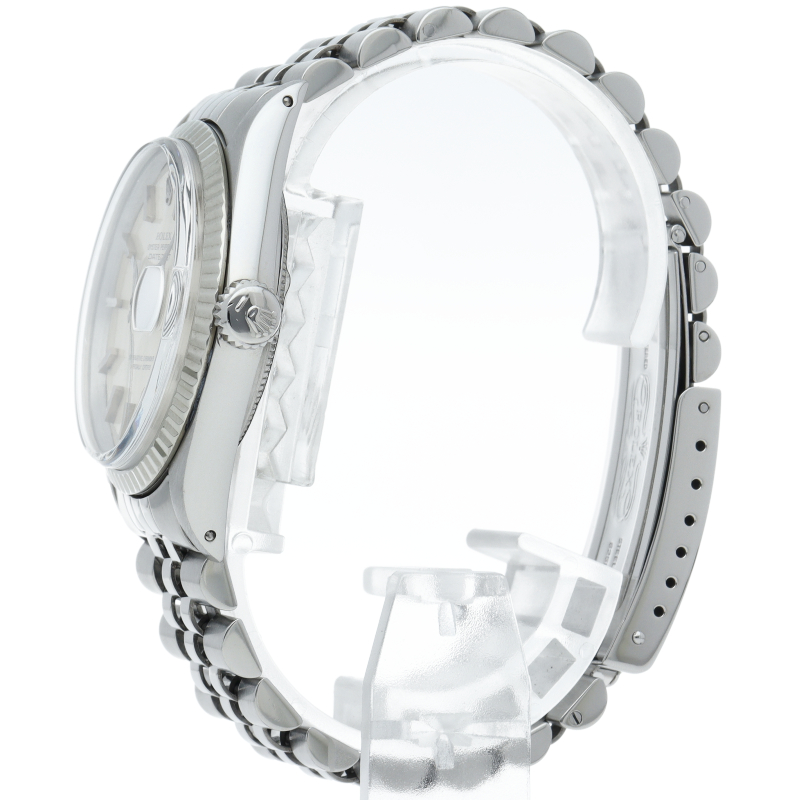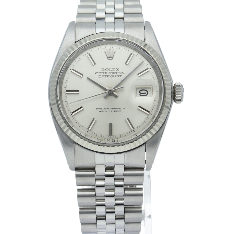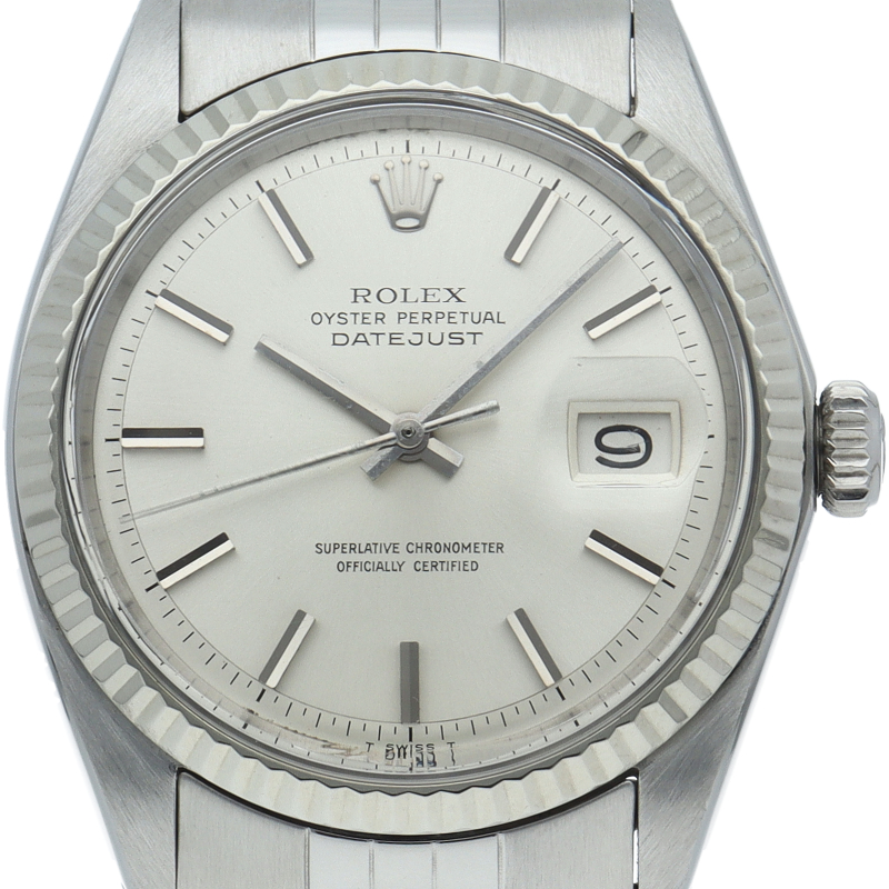 ロレックスのドレスウォッチの王道「デイトジャスト」。ホワイトゴールドとステンレスの組み合わせが高級感を感じさせる1本です。プラスチック風防仕様。