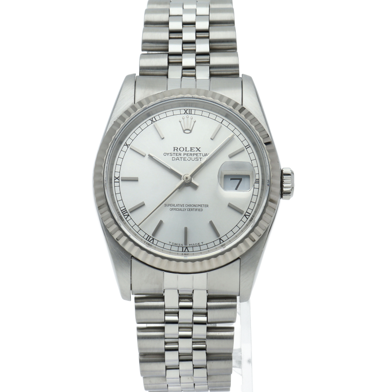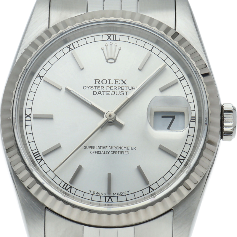 ロレックスのドレスウォッチの王道「デイトジャスト」。ホワイトゴールドとステンレスの組み合わせが高級感を感じさせる1本です。
