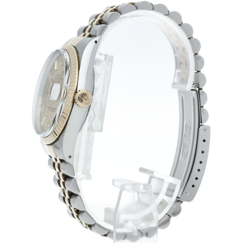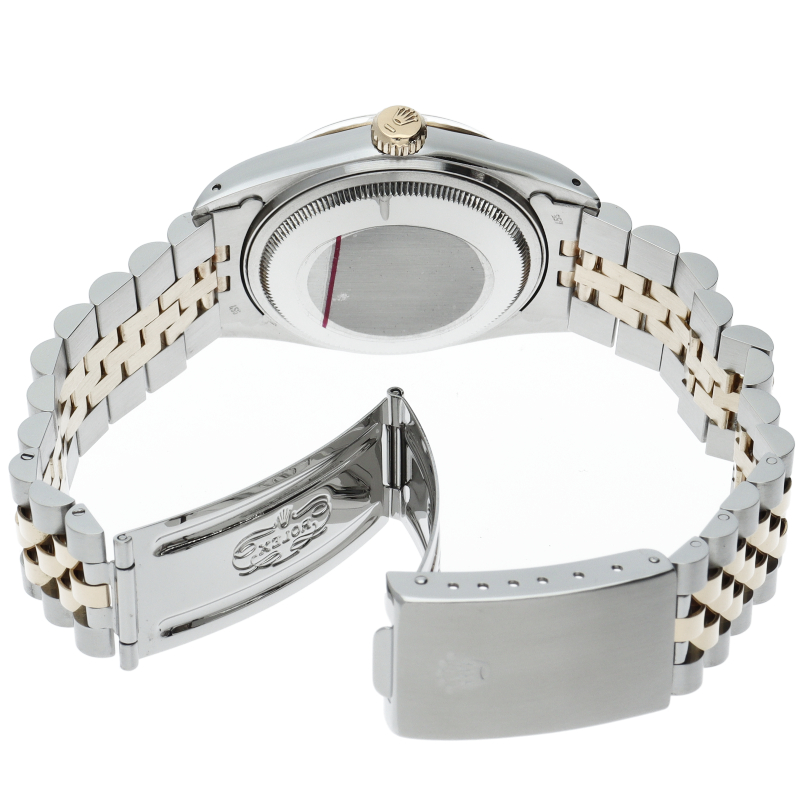 ロレックスドレスウォッチの王道「デイトジャスト」。イエローゴールドとステンレスの組み合わせが高級感を感じさせる1本です。プラスチック風防仕様。