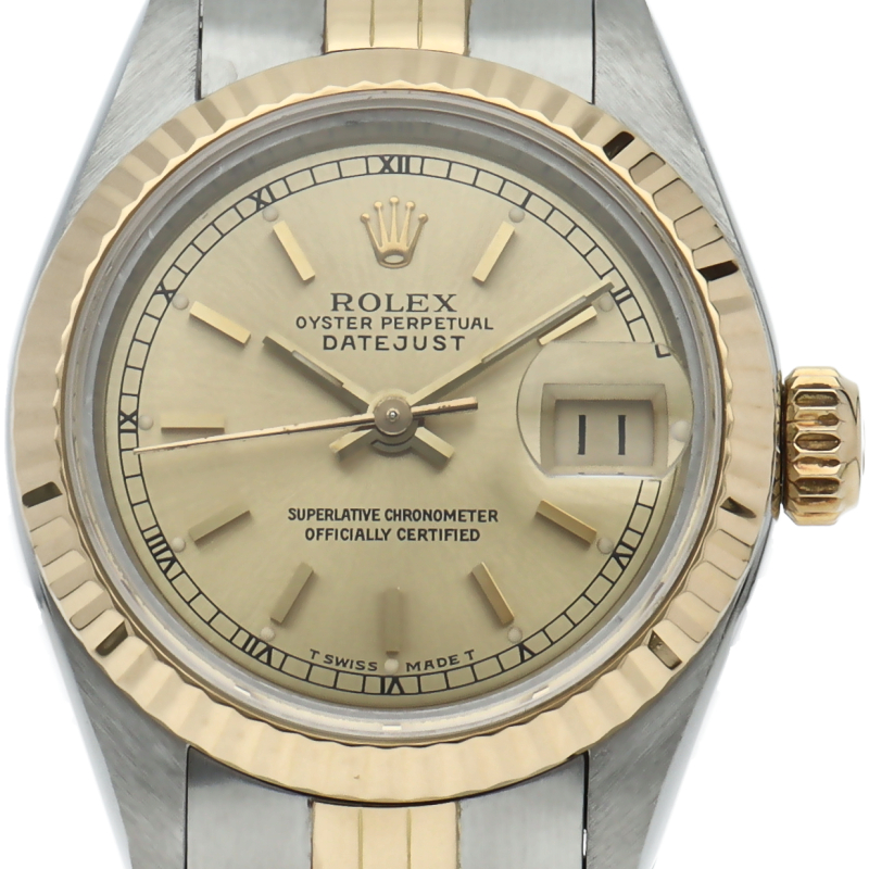 ロレックスのドレスウォッチの王道「デイトジャスト」。イエローゴールドとステンレスの組み合わせが上品で高級感を感じさせる1本です。