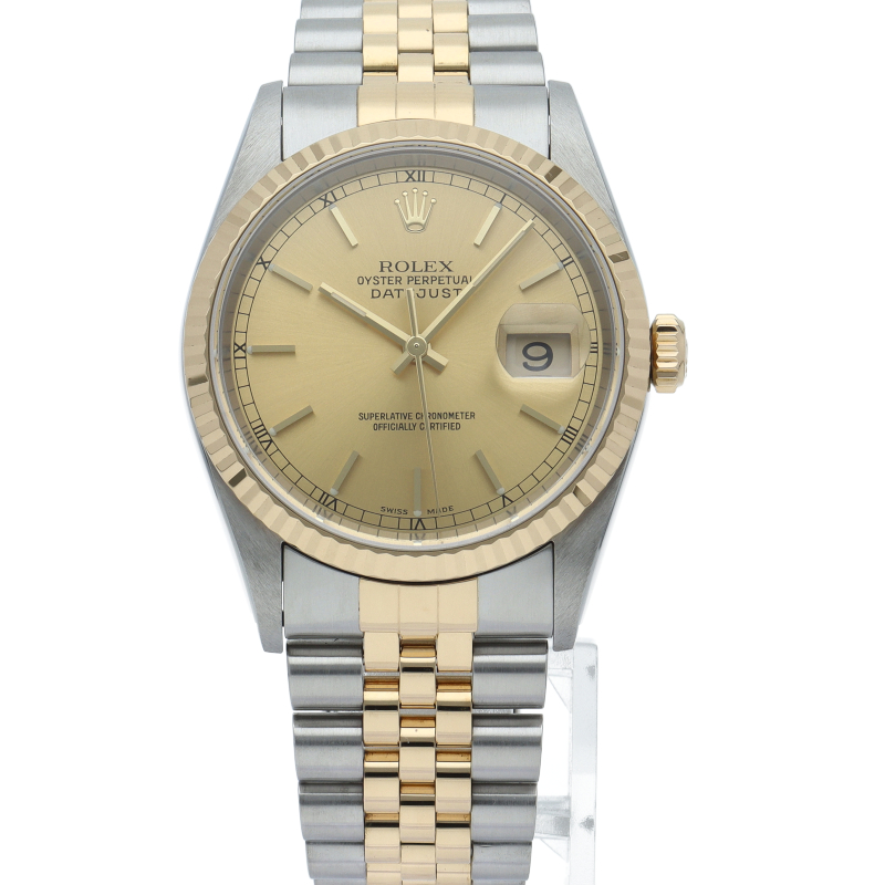 ロレックスのドレスウォッチの王道「デイトジャスト」。イエローゴールドとステンレスの組み合わせが上品で高級感を感じさせる1本です。