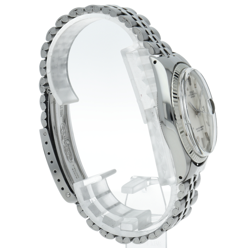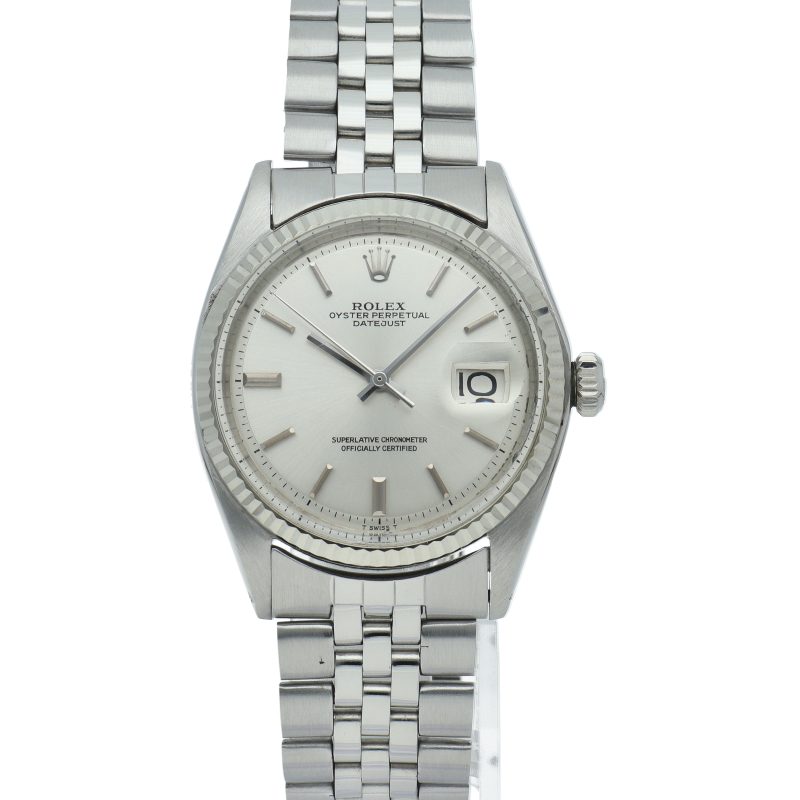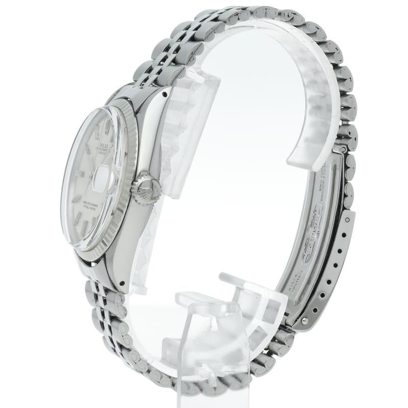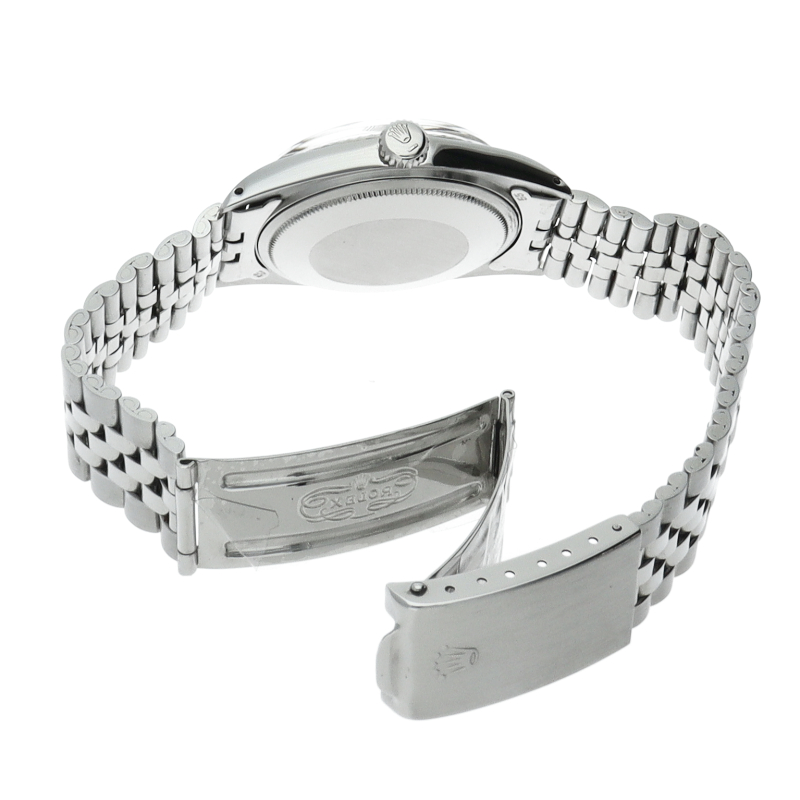 ロレックスのドレスウォッチの王道「デイトジャスト」。ホワイトゴールドとステンレスの組み合わせが高級感を感じさせる1本です。プラスチック風防仕様。