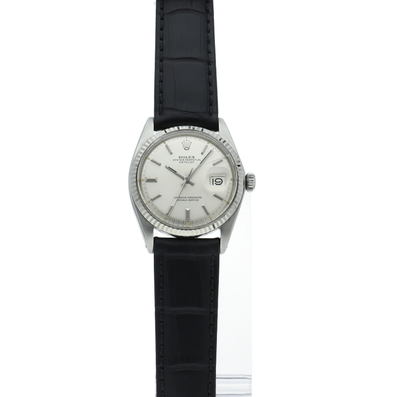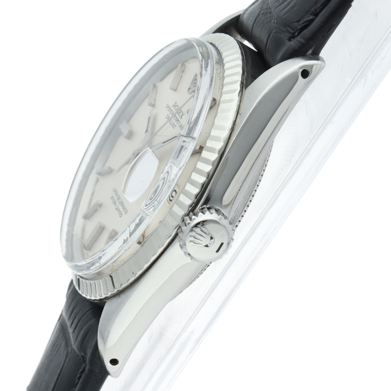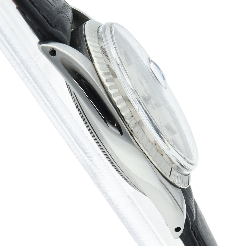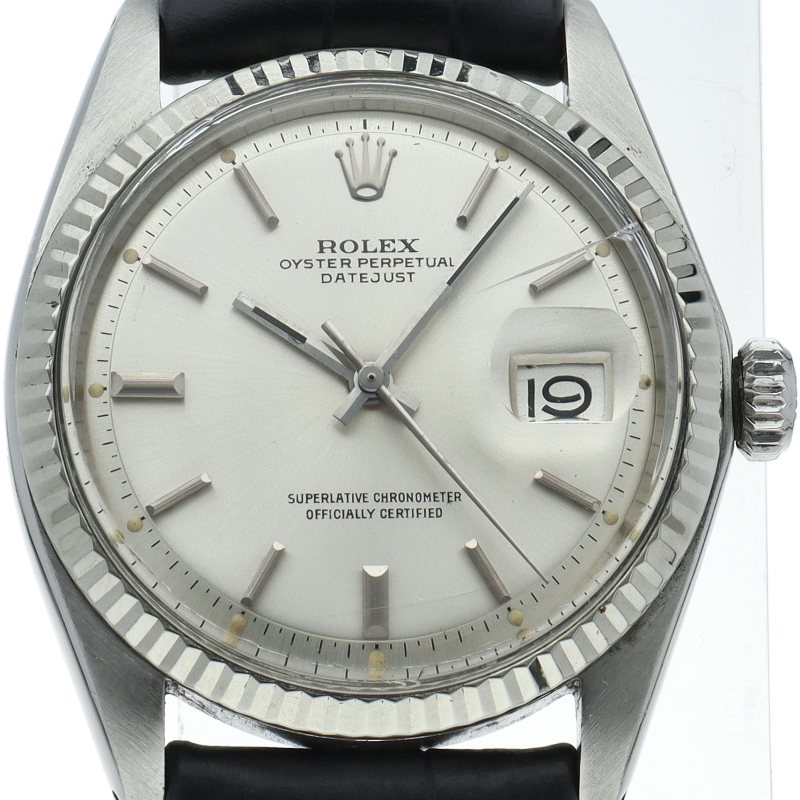 ロレックスのドレスウォッチの王道「デイトジャスト」。ホワイトゴールドとステンレスの組み合わせが高級感を感じさせる1本です。プラスチック風防仕様。