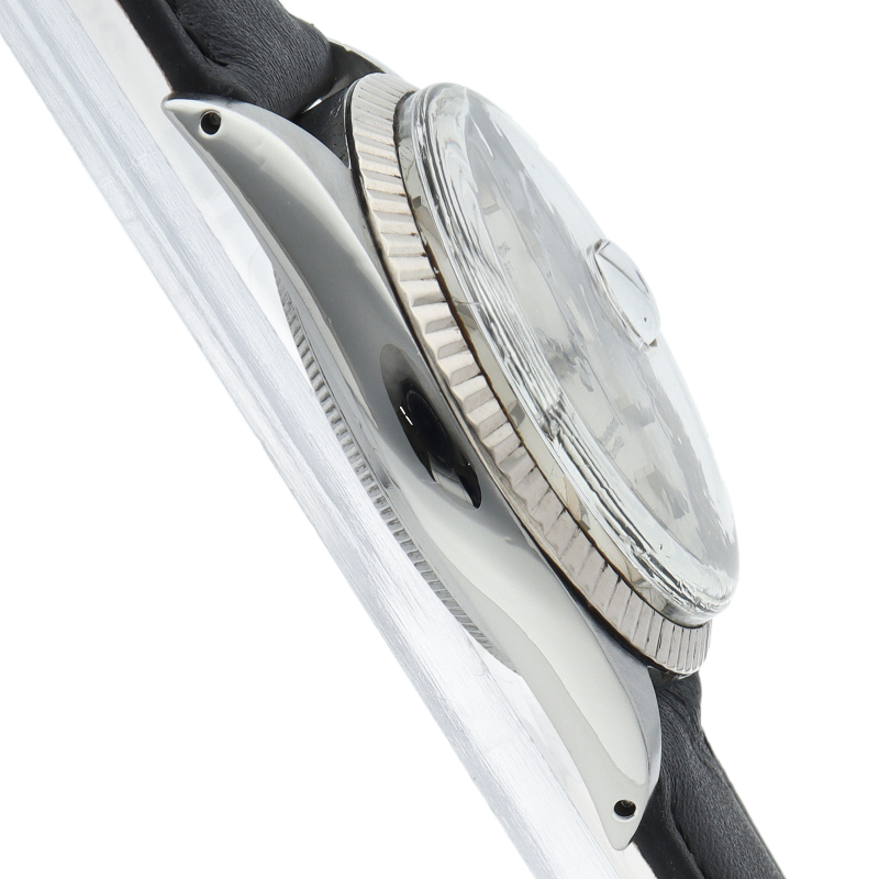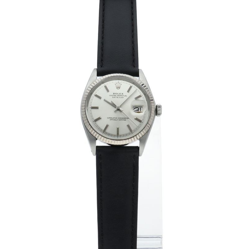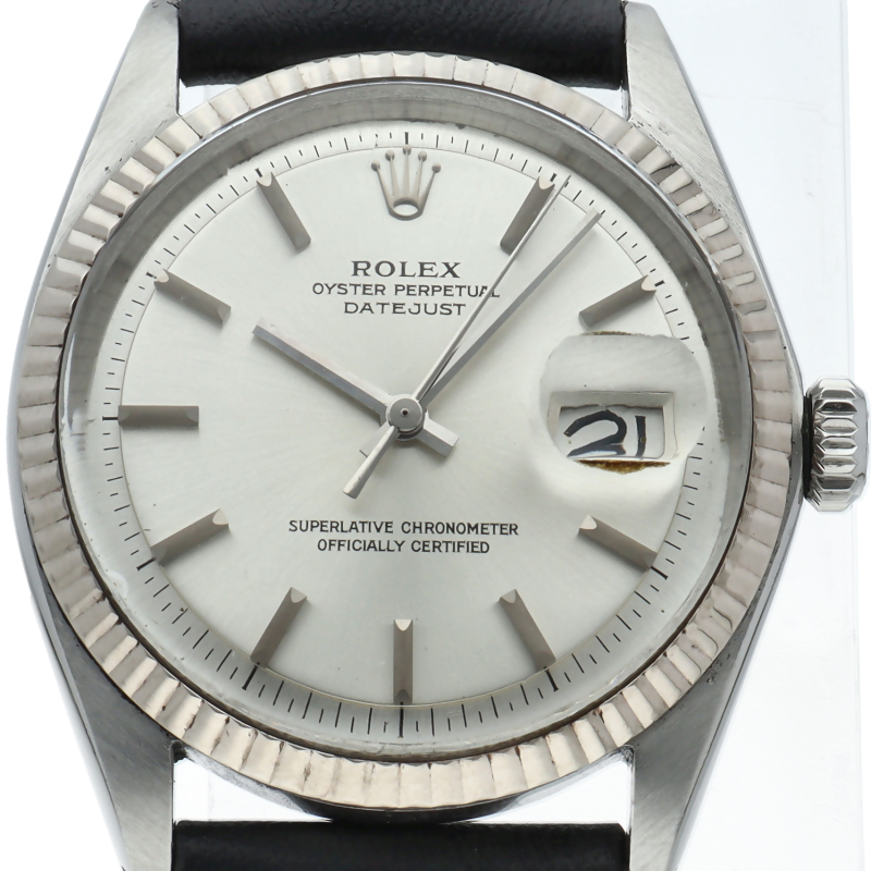 ロレックスのドレスウォッチの王道「デイトジャスト」。ホワイトゴールドとステンレスの組み合わせが高級感を感じさせる1本です。プラスチック風防仕様。