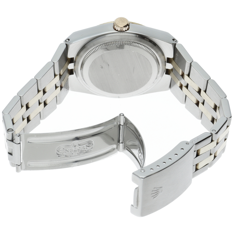 「デイトジャスト」のクォーツ仕様という珍しいモデルで「オイスタークォーツ」です。現行にはない直線的なケースとブレスのフォルムが印象的で貴重な1本。