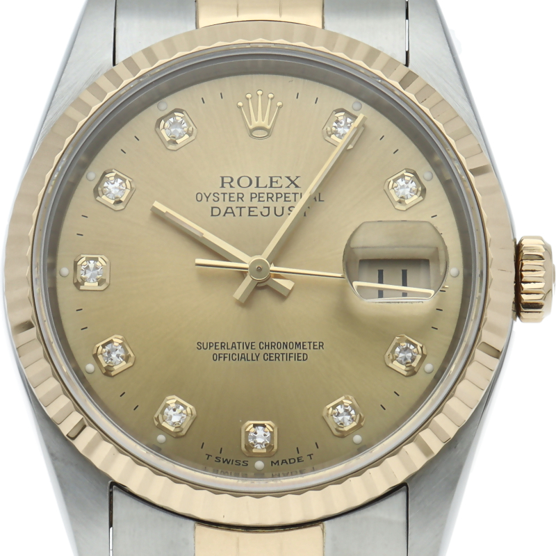 ロレックスのドレスウォッチの王道「デイトジャスト」。イエローゴールドとステンレスの組み合わせが上品で高級感を感じさせる1本です。