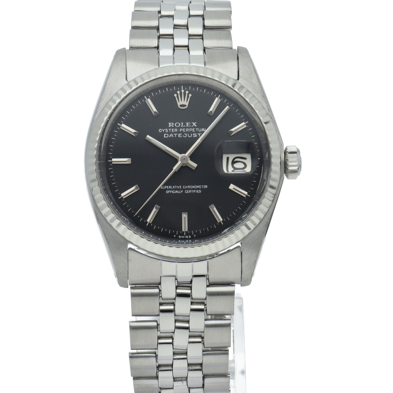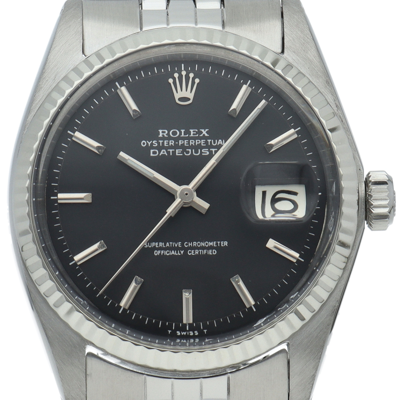 ロレックスのドレスウォッチの王道「デイトジャスト」。ホワイトゴールドとステンレスの組み合わせが高級感を感じさせる1本です。プラスチック風防仕様。
