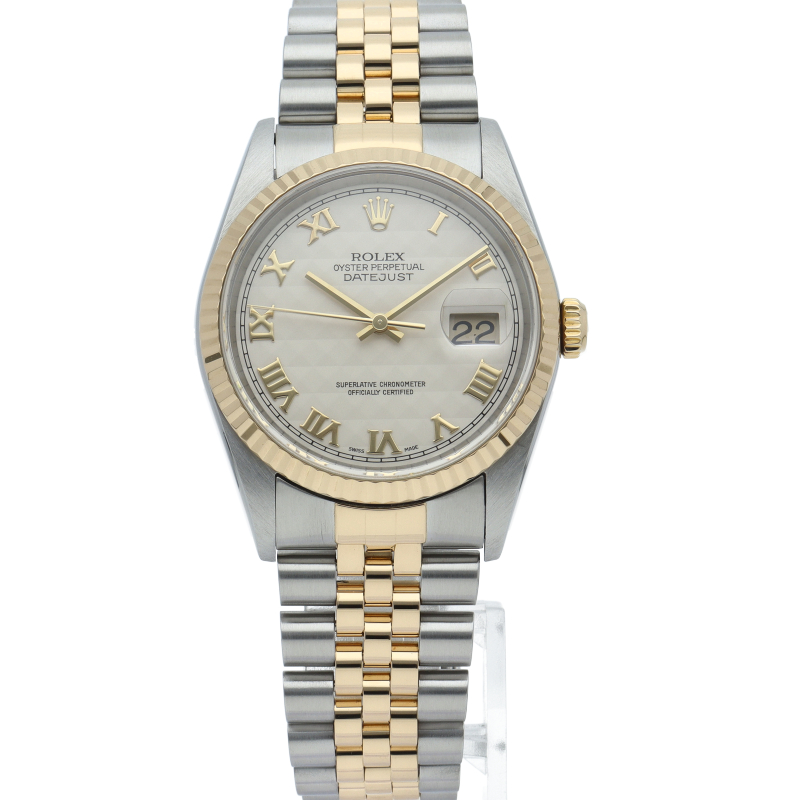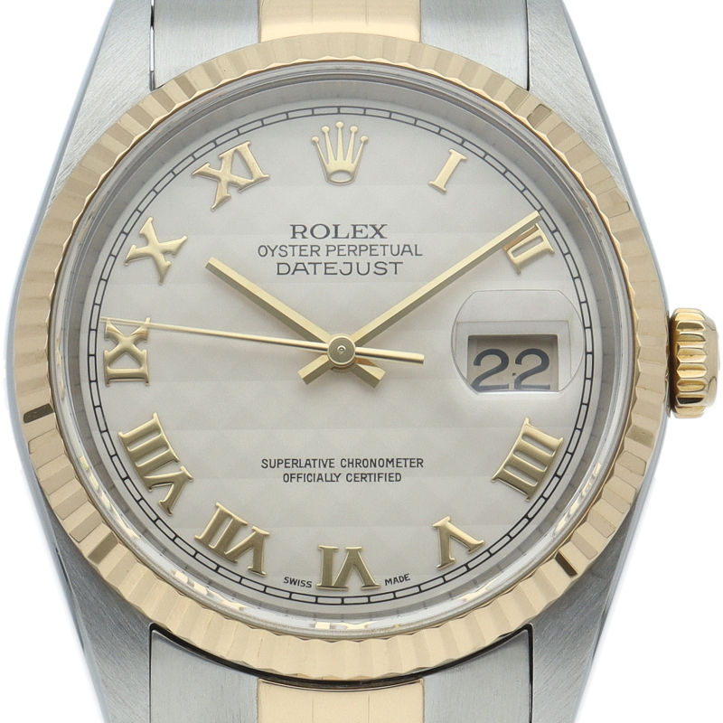 ロレックスのドレスウォッチの王道「デイトジャスト」。イエローゴールドとステンレスの組み合わせが上品で高級感を感じさせる1本です。