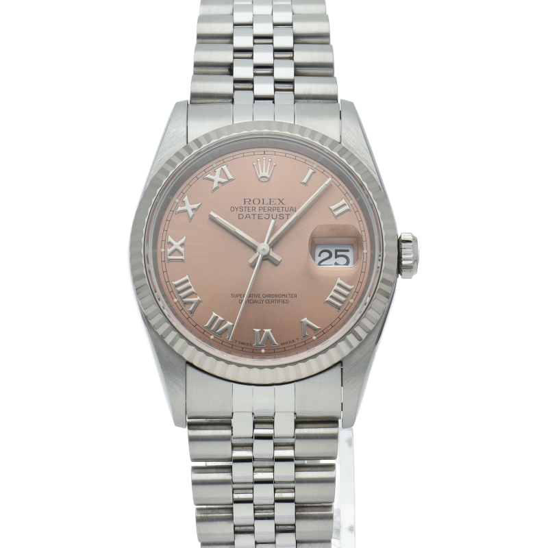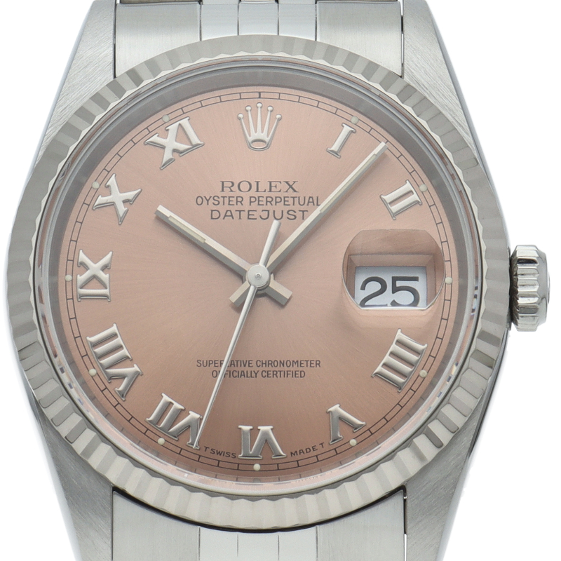 ロレックスのドレスウォッチの王道「デイトジャスト」。ホワイトゴールドとステンレスの組み合わせが上品で高級感を感じさせる1本です。