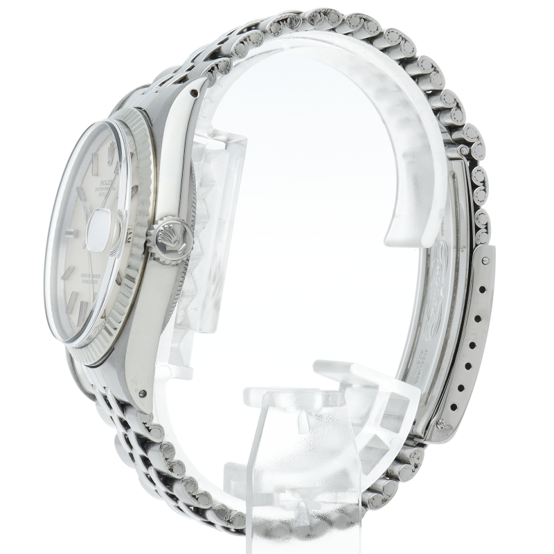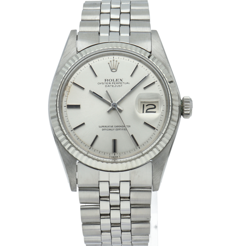 ロレックスのドレスウォッチの王道「デイトジャスト」。ホワイトゴールドとステンレスの組み合わせが高級感を感じさせる1本です。プラスチック風防仕様。
