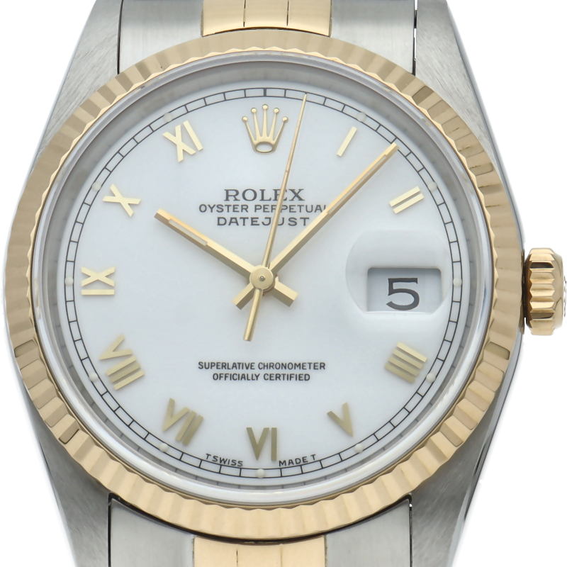 ロレックスのドレスウォッチの王道「デイトジャスト」。イエローゴールドとステンレスの組み合わせが上品で高級感を感じさせる1本です。