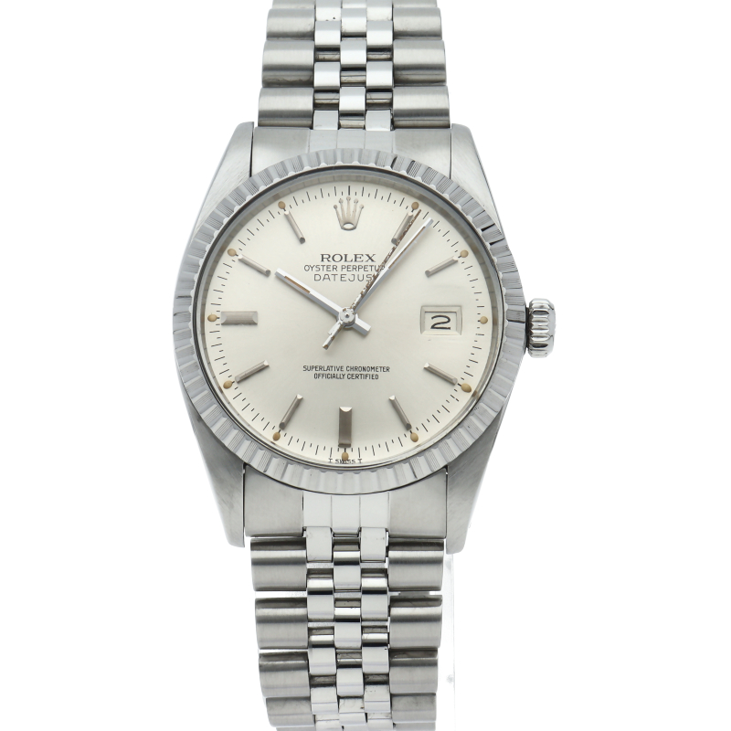 前作の1603と違い、リューズ操作による日付のクイックチェンジ機能が付いています。エンジンターンドベゼルやプラスチック風防を備え、旧作ならではの味わいがあるモデルです。