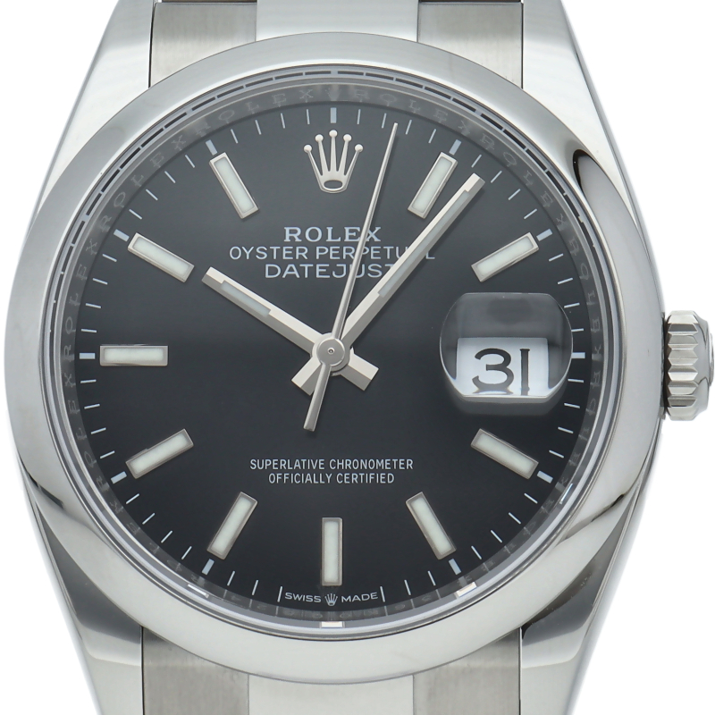 ケース径36mmのメンズモデル「デイトジャスト36」。14件もの特許を取得し、新開発の脱進機のクロナジーエスケープメントを装備した上で70時間ものロングパワーリザーブを確保した自社開発キャリバー3235を搭載します。
