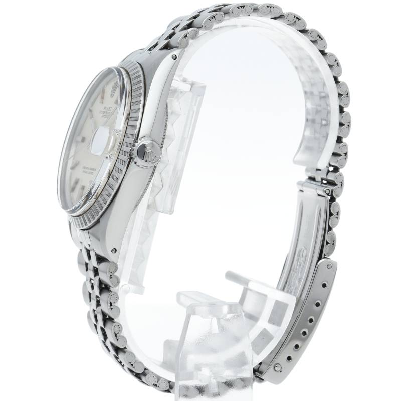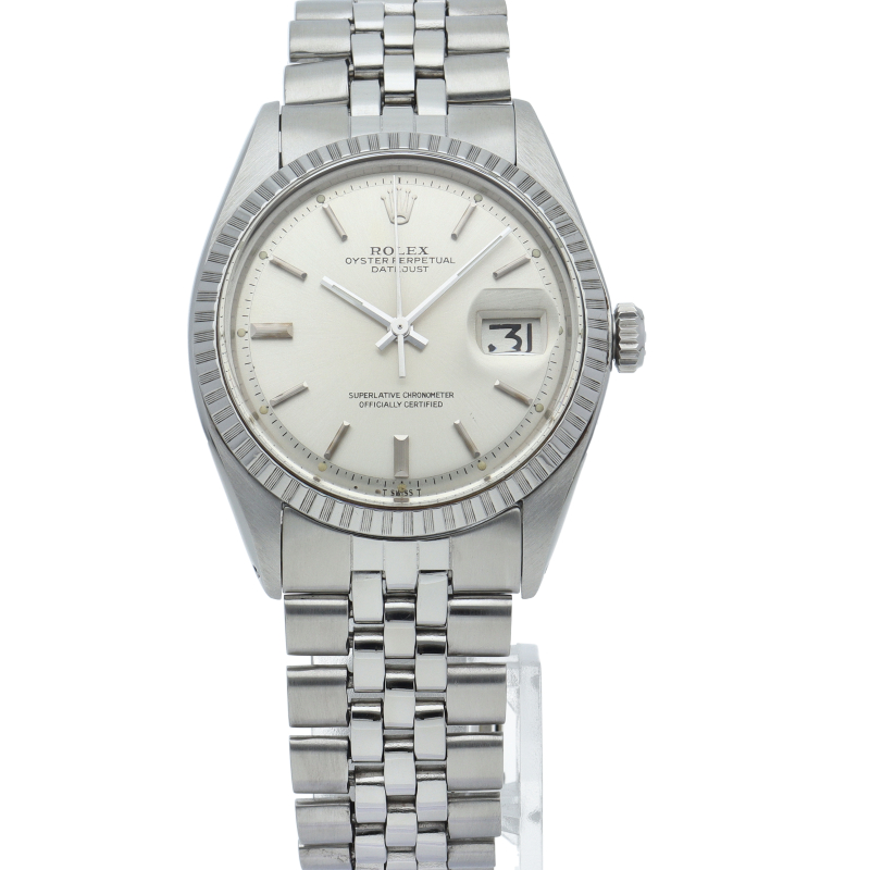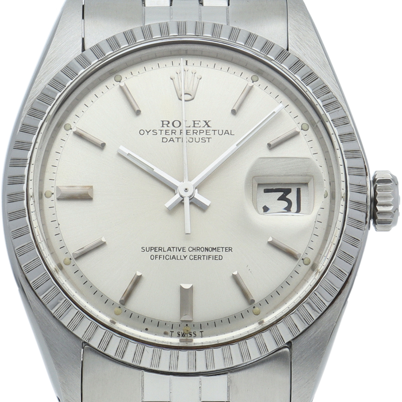 ロレックスのドレスウォッチの王道「デイトジャスト」。エンジンターンドベゼルのアンティーク感が逆に新鮮な1本。