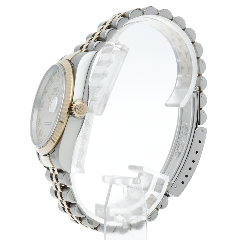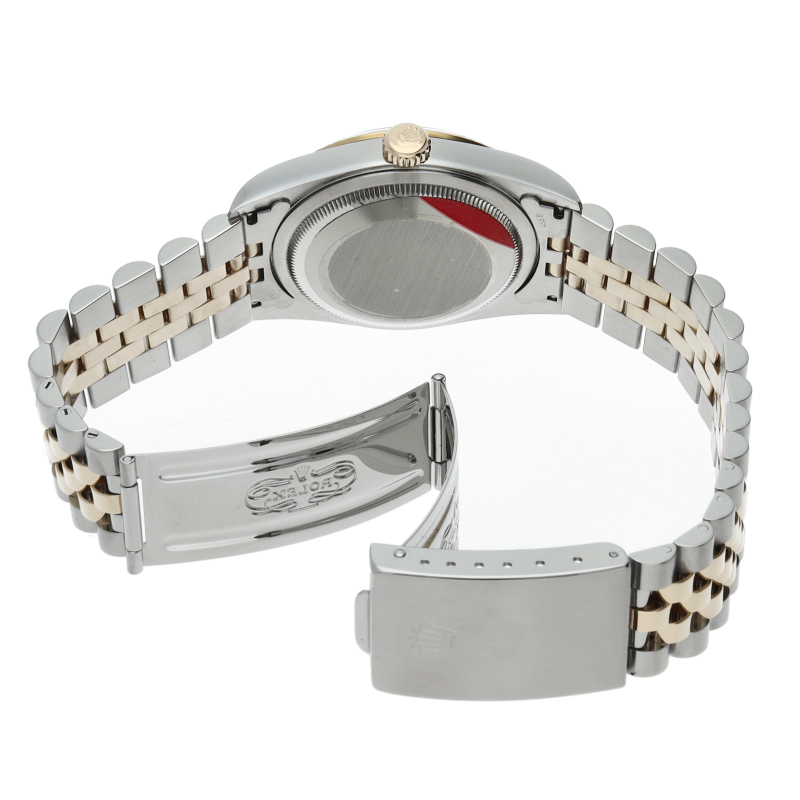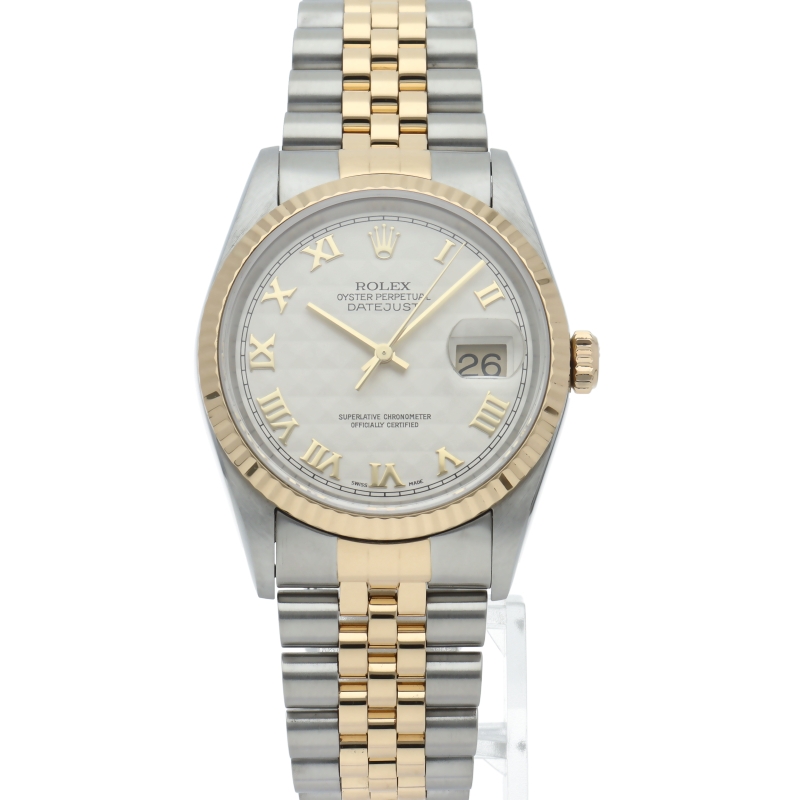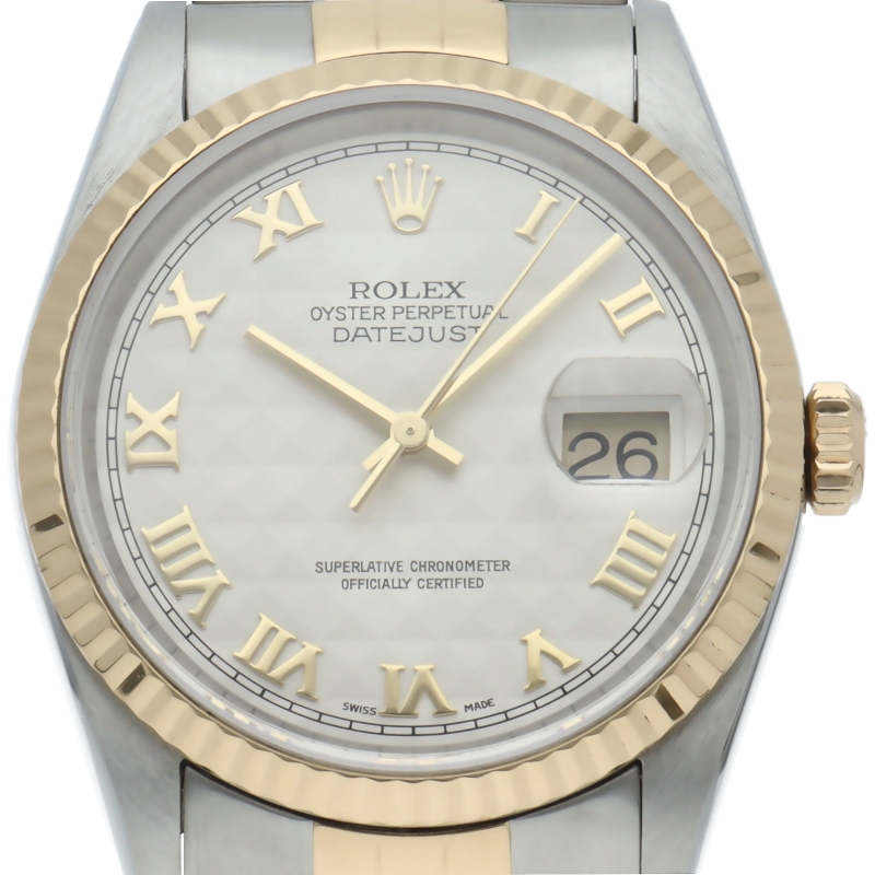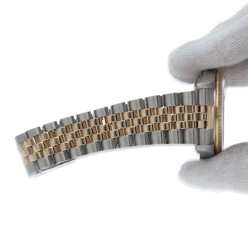 ロレックスのドレスウォッチの王道「デイトジャスト」。イエローゴールドとステンレスの組み合わせが上品で高級感を感じさせる1本です。人気のピラミッド文字盤。