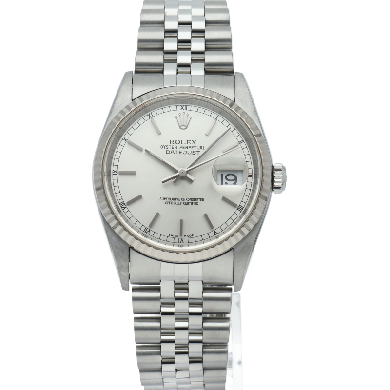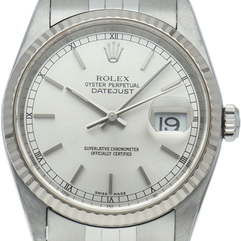 ロレックスのドレスウォッチの王道「デイトジャスト」。ホワイトゴールドとステンレスの組み合わせが上品で高級感を感じさせる1本です。