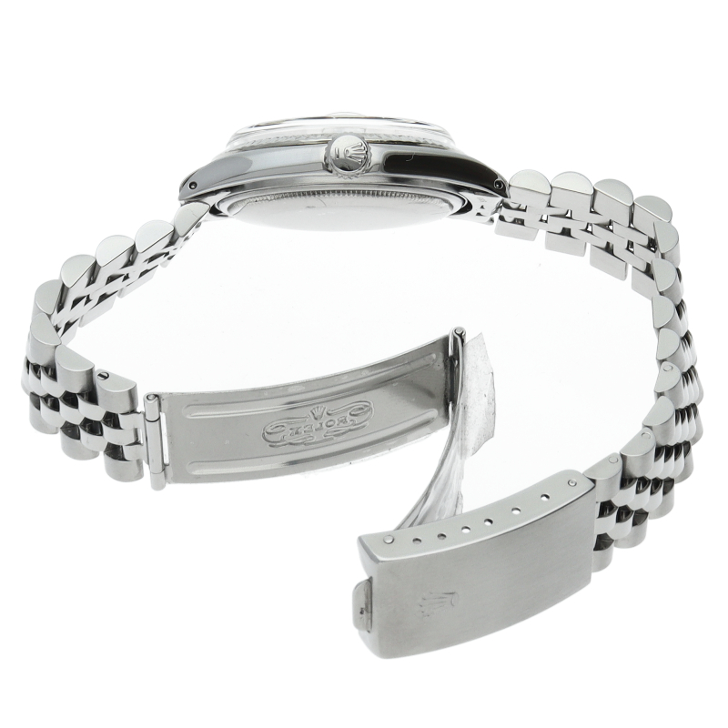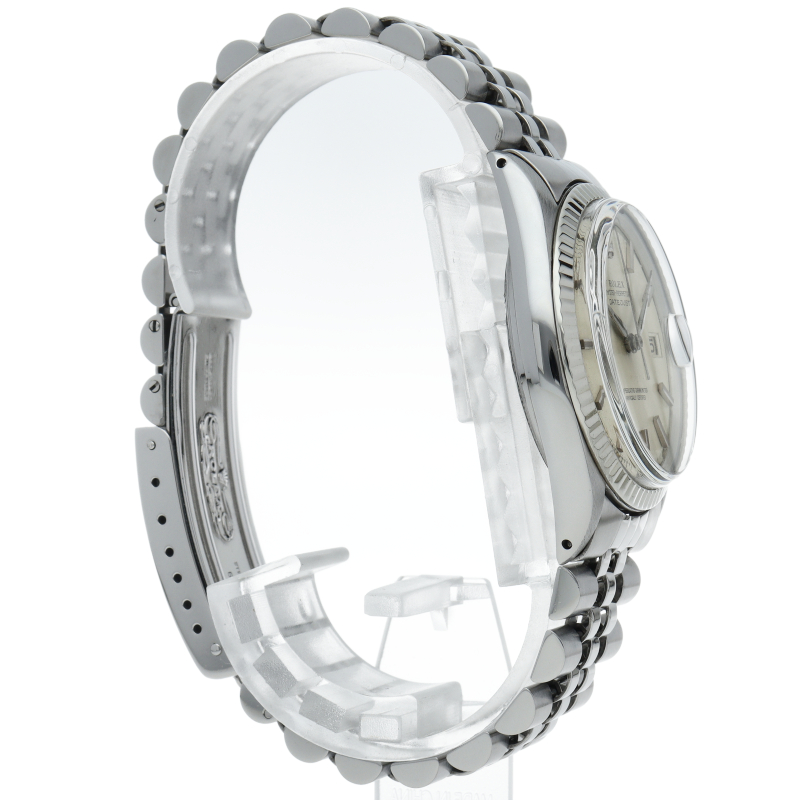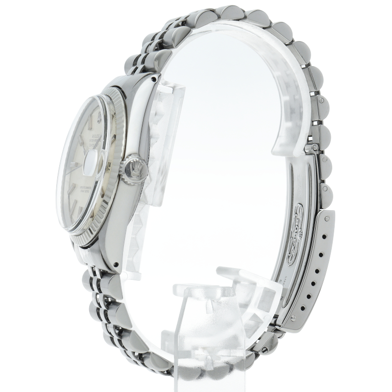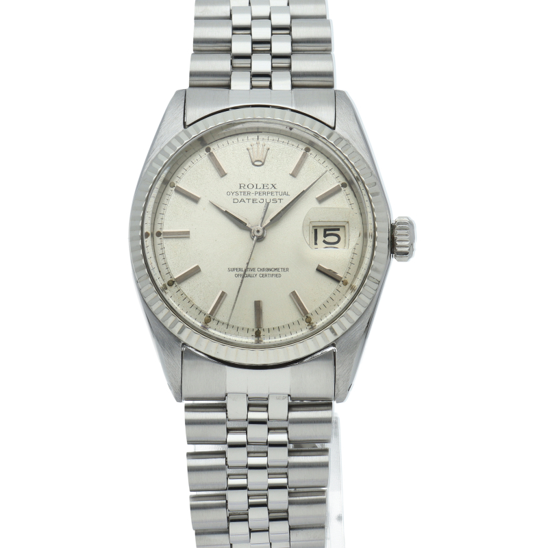 ロレックスのドレスウォッチの王道「デイトジャスト」。ホワイトゴールドとステンレスの組み合わせが高級感を感じさせる1本です。プラスチック風防仕様。