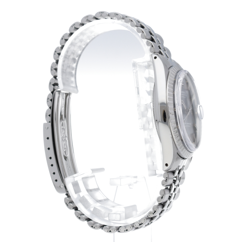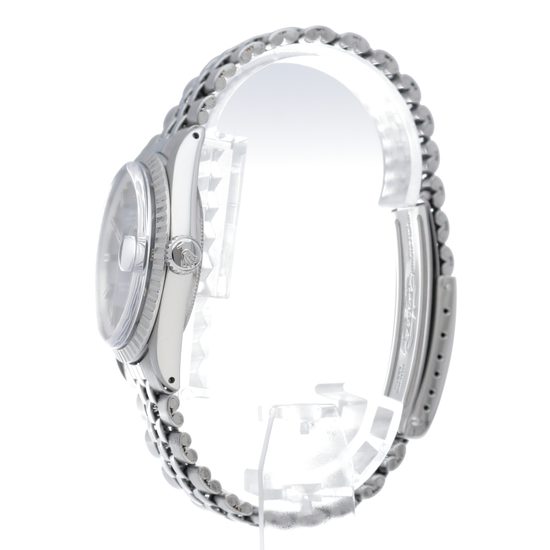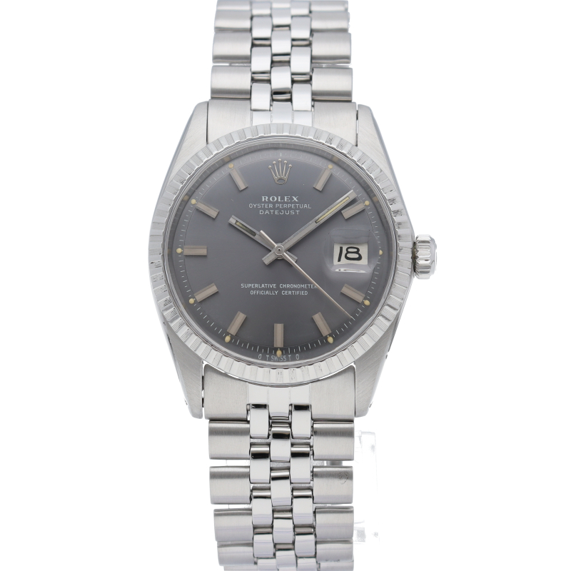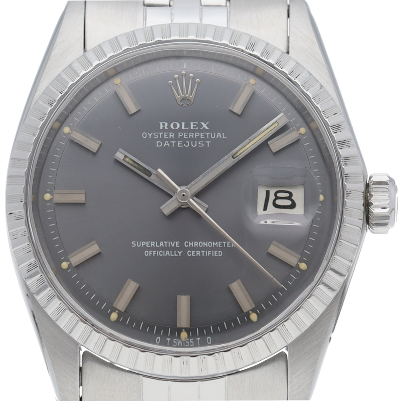 ロレックスのドレスウォッチの王道「デイトジャスト」。エンジンターンドベゼルのアンティーク感が逆に新鮮な1本。