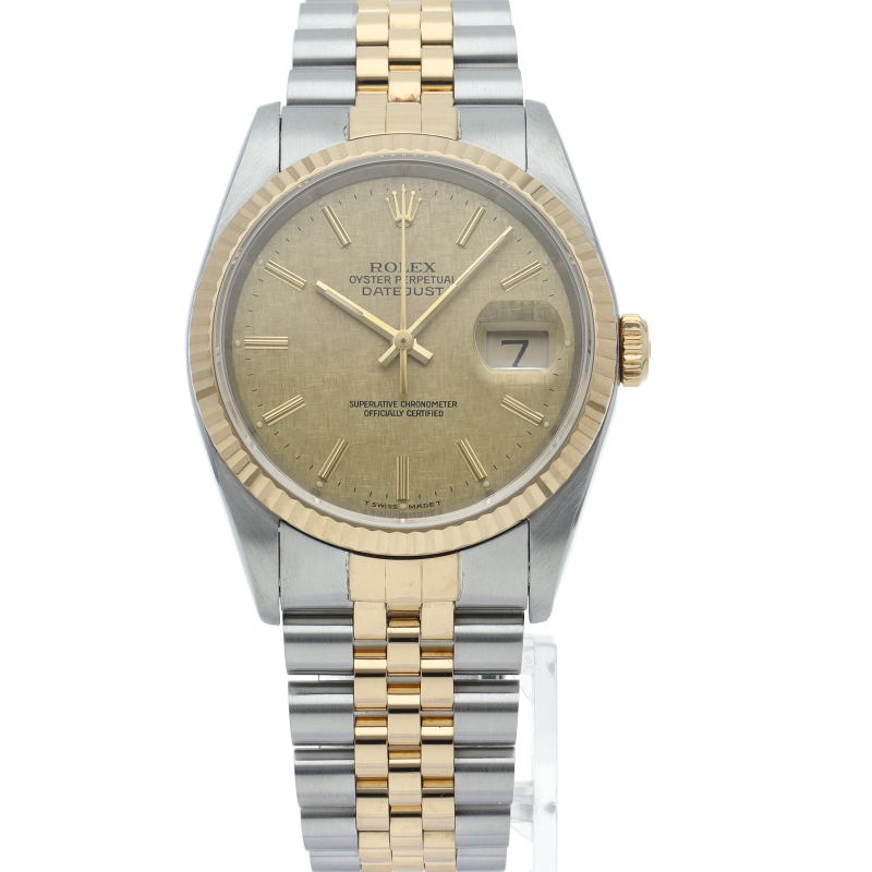 ロレックスのドレスウォッチの王道「デイトジャスト」。イエローゴールドとステンレスの組み合わせが上品で高級感を感じさせる1本です。