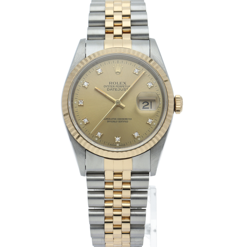 ロレックスのドレスウォッチの王道「デイトジャスト」。イエローゴールドとステンレスの組み合わせが上品で高級感を感じさせる1本です。