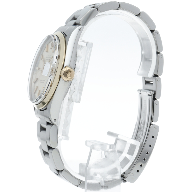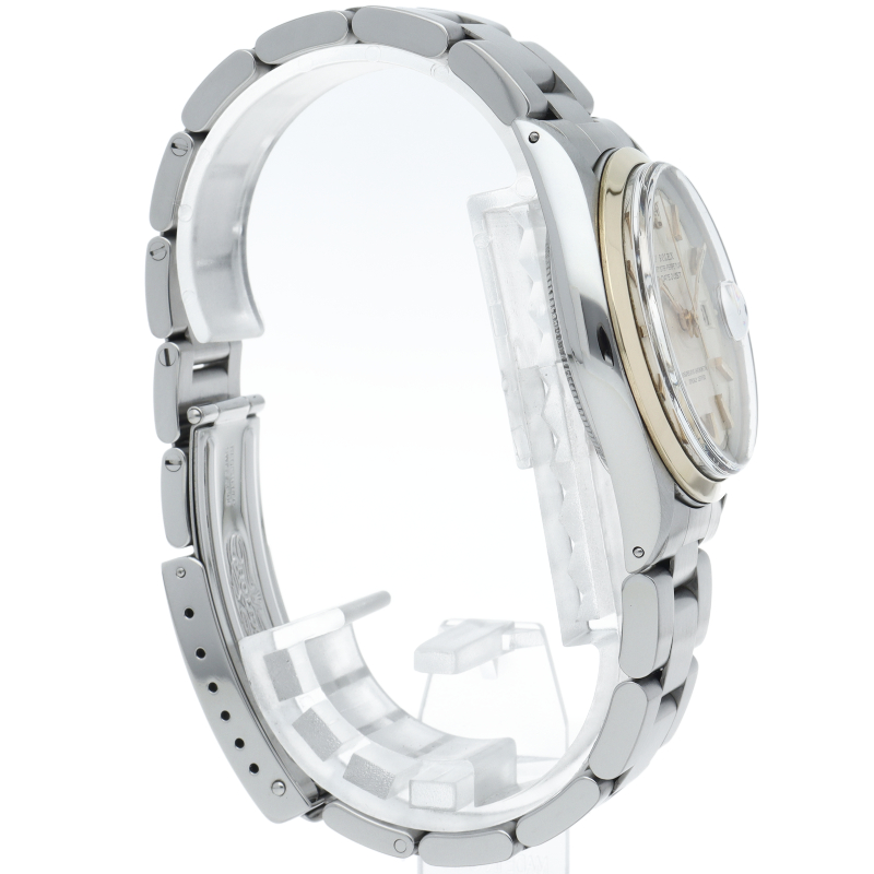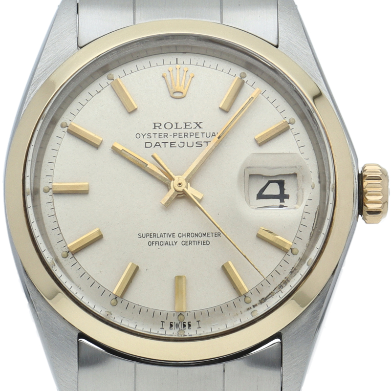 ロレックスドレスウォッチの王道「デイトジャスト」。デイトジャストのスムースベゼルは珍しいモデルです。プラスチック風防仕様。