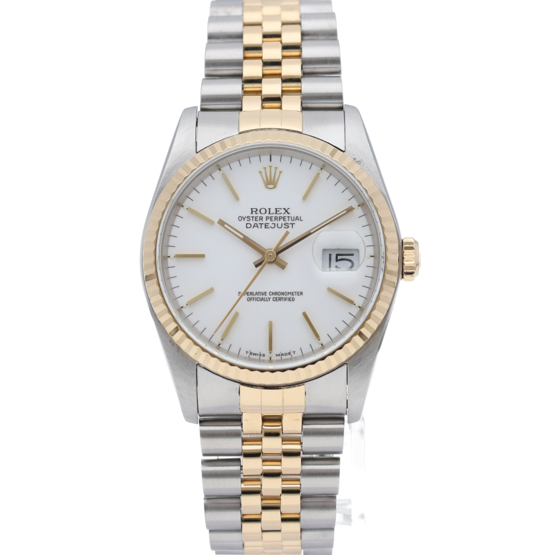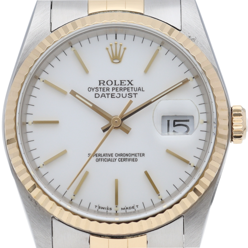 ロレックスのドレスウォッチの王道「デイトジャスト」。イエローゴールドとステンレスの組み合わせが上品で高級感を感じさせる1本です。