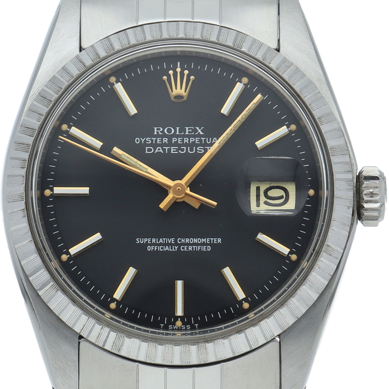 ロレックス「デイトジャスト」(Ref.1603)。ロレックスのドレスウォッチの王道「デイトジャスト」。フルーテッドベゼルのアンティーク感が逆に新鮮な1本。