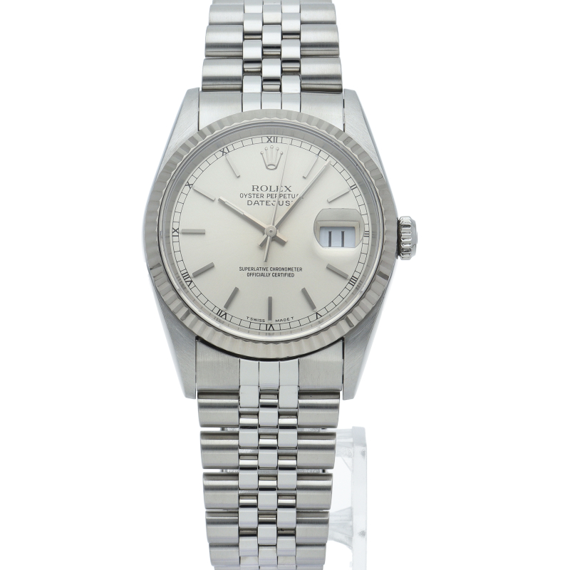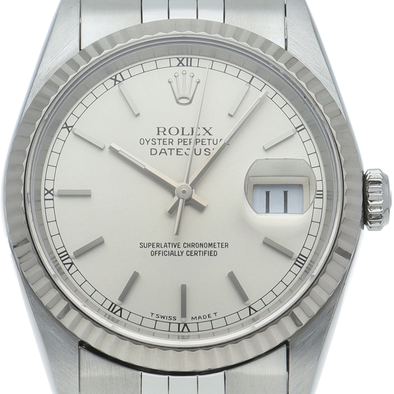 ロレックスのドレスウォッチの王道「デイトジャスト」。ホワイトゴールドとステンレスの組み合わせが上品で高級感を感じさせる1本です。