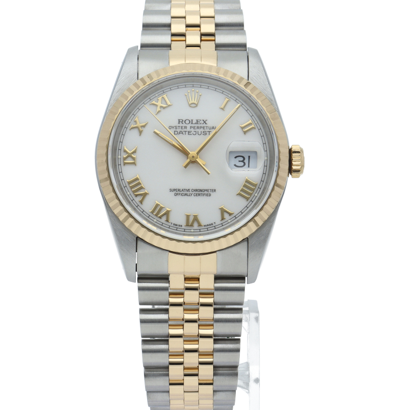 ロレックスのドレスウォッチの王道「デイトジャスト」。イエローゴールドとステンレスの組み合わせが上品で高級感を感じさせる1本です。