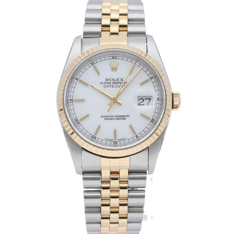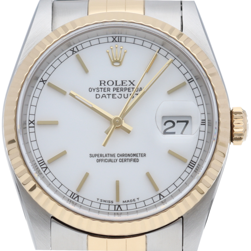 ロレックスのドレスウォッチの王道「デイトジャスト」。イエローゴールドとステンレスの組み合わせが上品で高級感を感じさせる1本です。