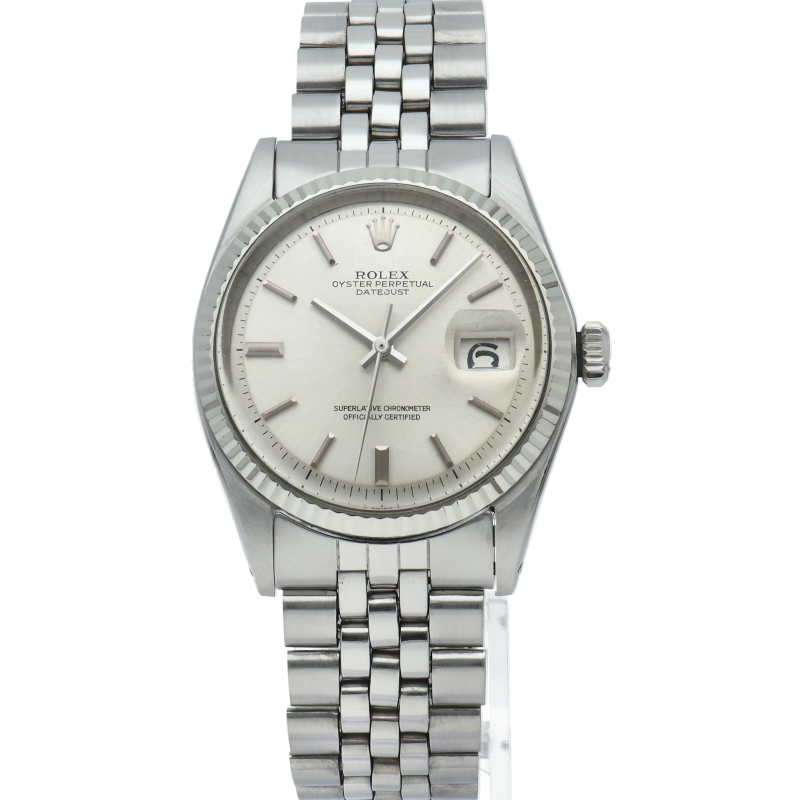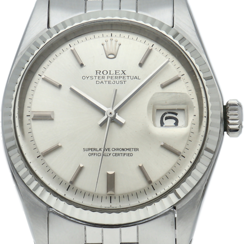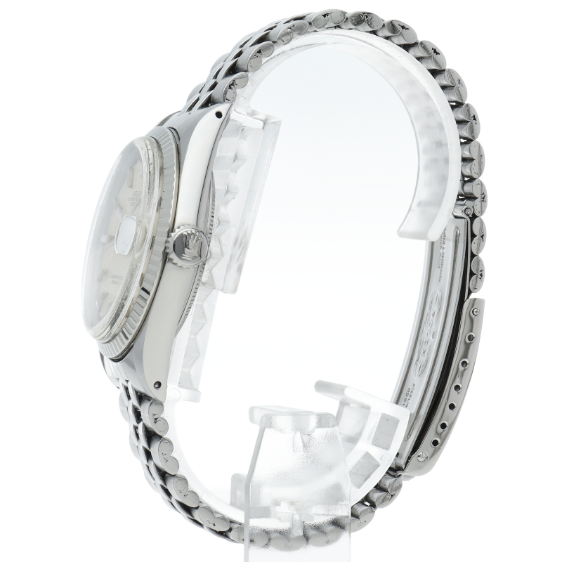 ロレックスのドレスウォッチの王道「デイトジャスト」。ホワイトゴールドとステンレスの組み合わせが高級感を感じさせる1本です。プラスチック風防仕様。