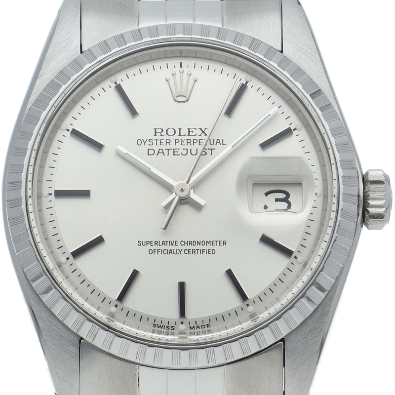 ロレックス「デイトジャスト」(Ref.1603)。SS素材のエンジンターンドベゼルが渋いヴィンテージモデル。