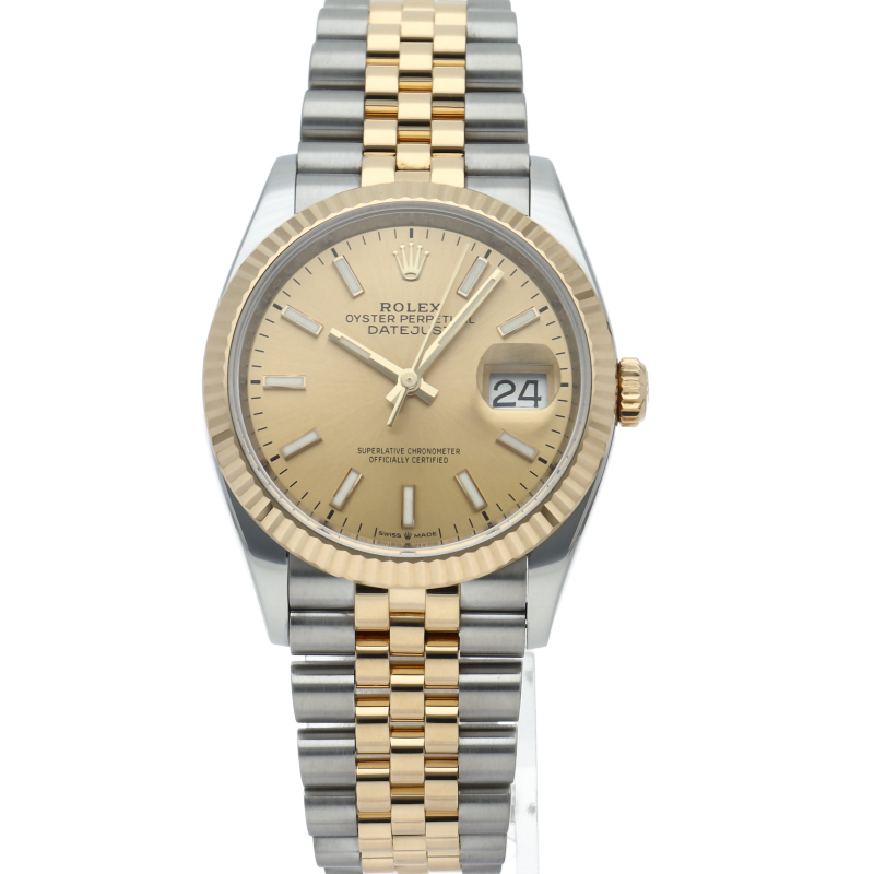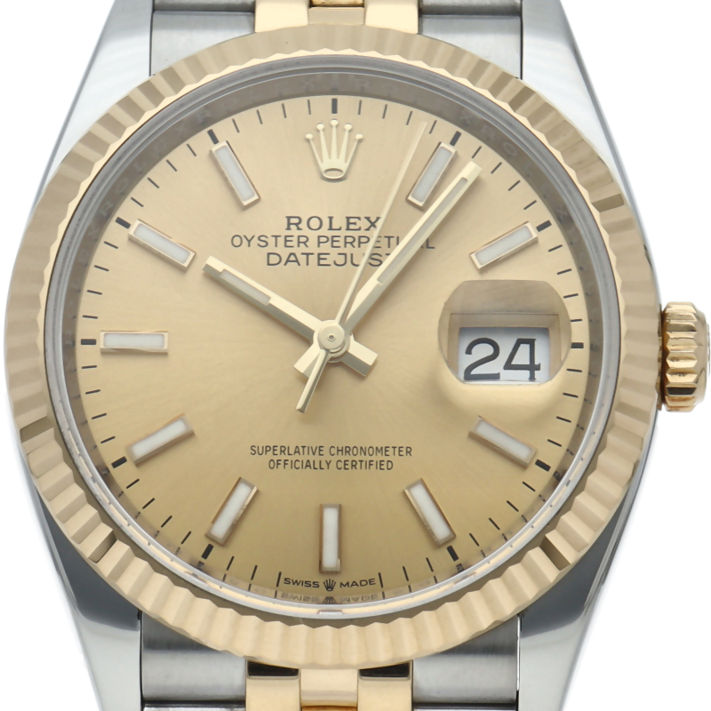 2018年発表のニューモデル、ケース径36mmのメンズモデル「デイトジャスト36」。14件もの特許を取得し、新開発の脱進機のクロナジーエスケープメントを装備した上で70時間ものロングパワーリザーブを確保した自社開発キャリバー3235を搭載します。