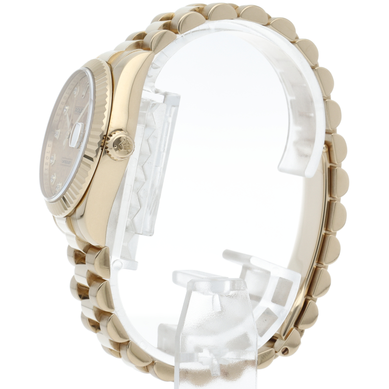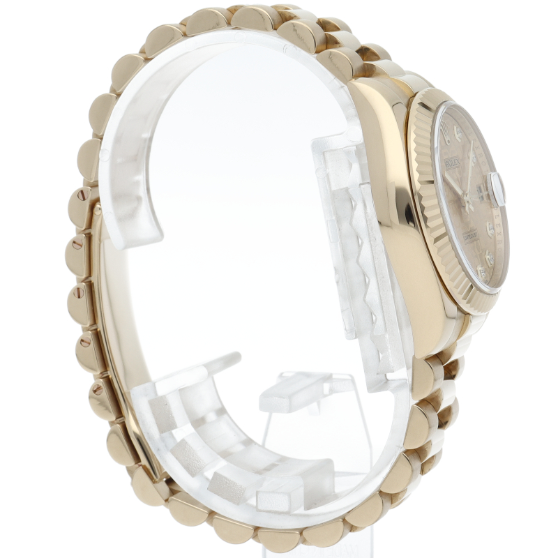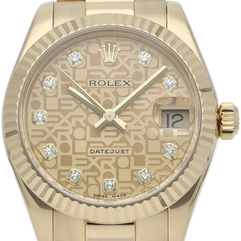 ボーイズサイズのデイトジャスト「178278G」。素材にイエローゴールドを採用したこのモデルは、金無垢ならではの存在感を存分に味わうことができます。