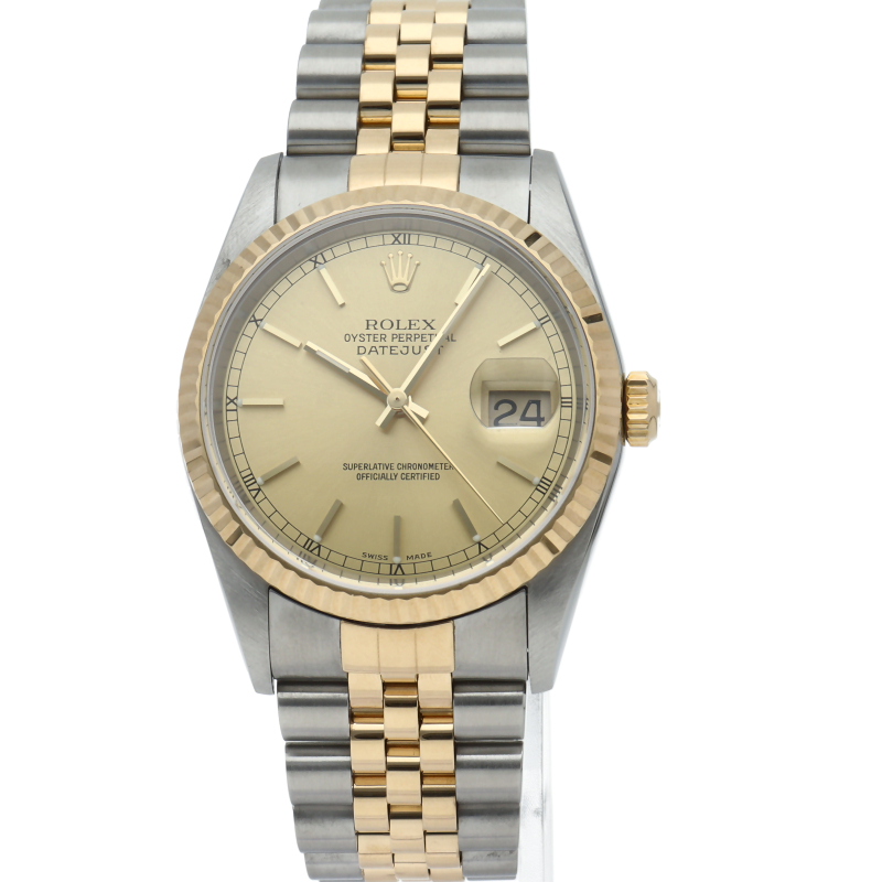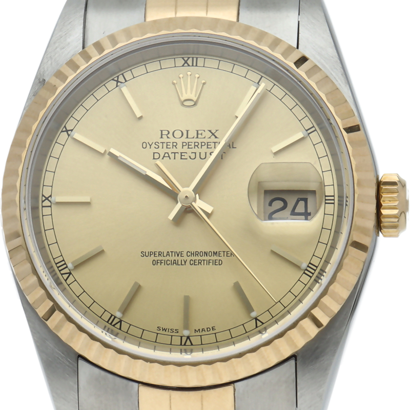 ロレックスのドレスウォッチで幅広い年齢層に愛されている「デイトジャスト」。イエローゴールドを全体に使用した高級感溢れるステータスウォッチです。