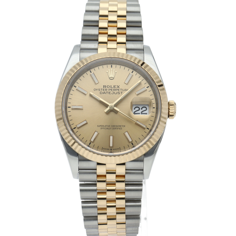 2018年発表のニューモデル、ケース径36mmのメンズモデル「デイトジャスト36」。14件もの特許を取得し、新開発の脱進機のクロナジーエスケープメントを装備した上で70時間ものロングパワーリザーブを確保した自社開発キャリバー3235を搭載します。