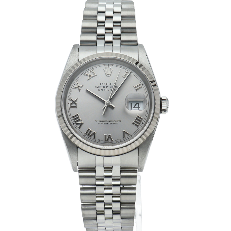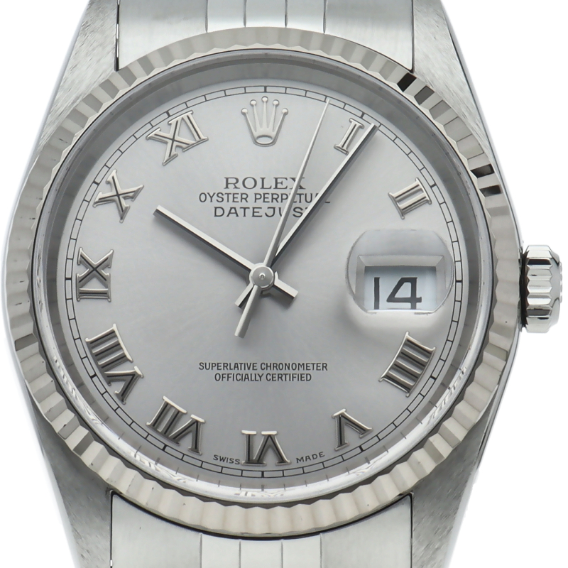 ロレックスのドレスウォッチの王道「デイトジャスト」。ホワイトゴールドとステンレスの組み合わせが上品で高級感を感じさせる1本です。