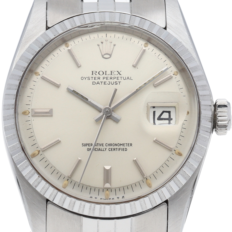 ロレックスのドレスウォッチの王道「デイトジャスト」。フルーテッドベゼルのアンティーク感が逆に新鮮な1本。