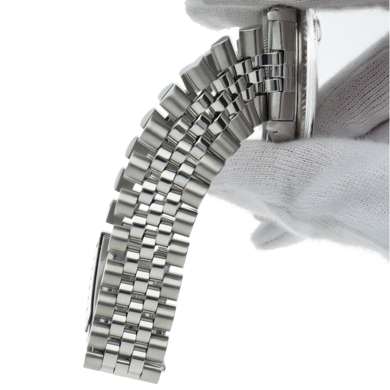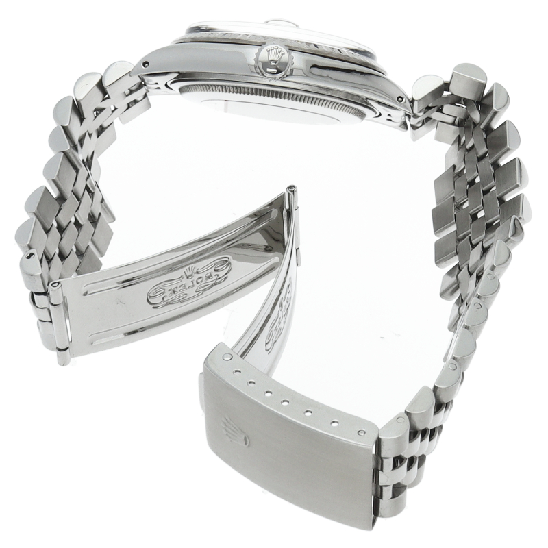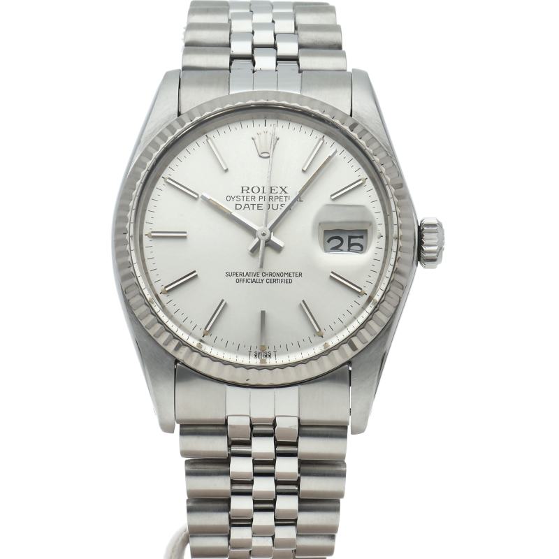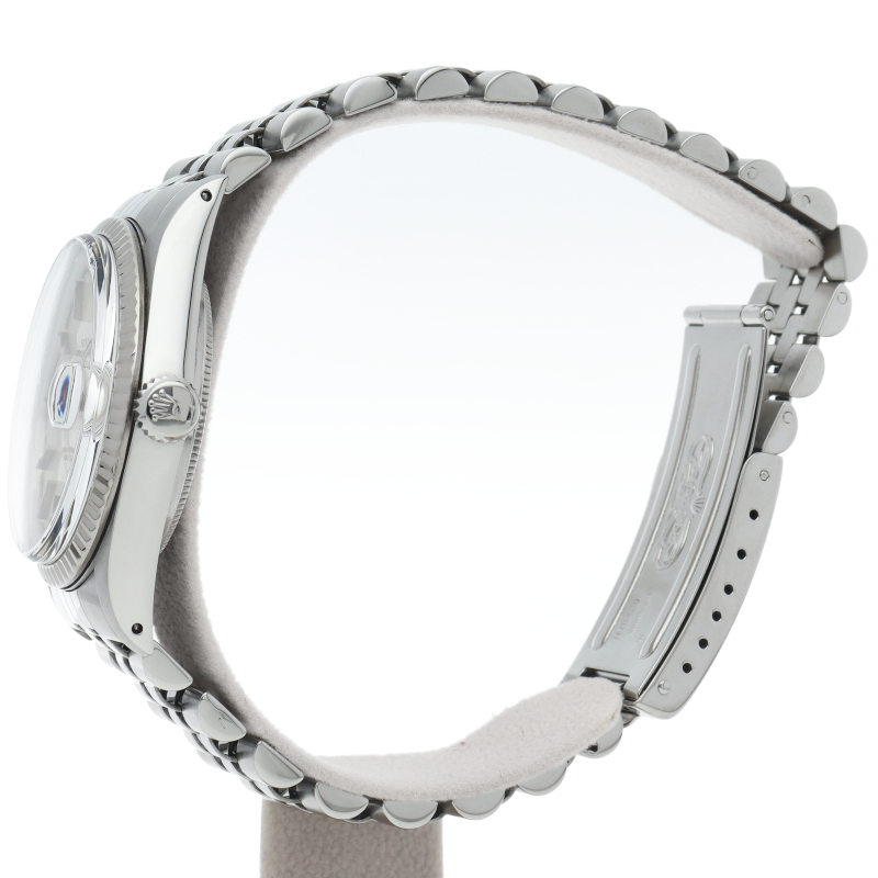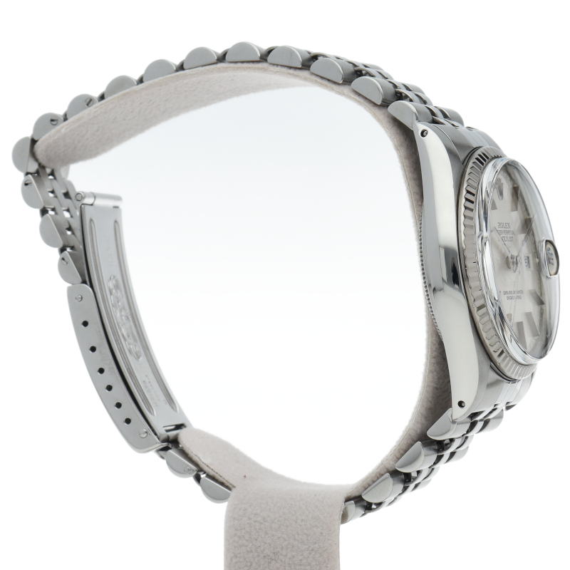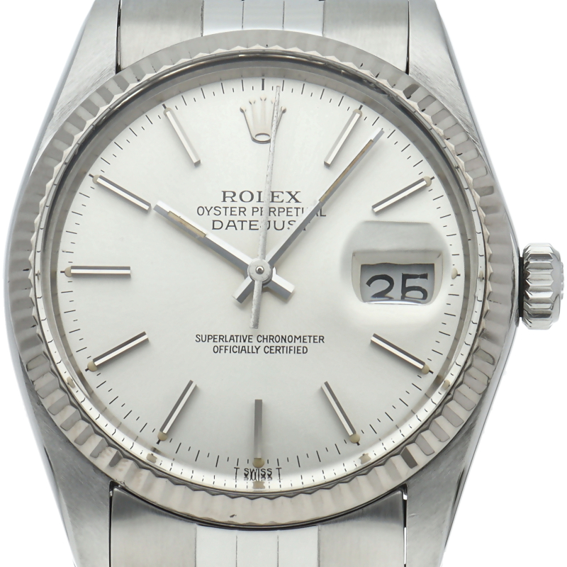 ロレックスのドレスウォッチの王道「デイトジャスト」。ホワイトゴールドとステンレスの組み合わせが高級感を感じさせる1本です。プラスチック風防仕様。
