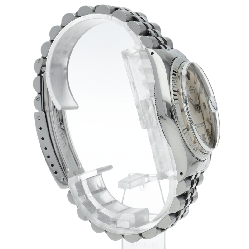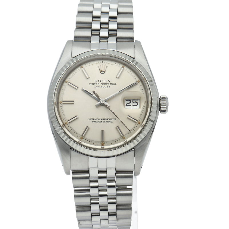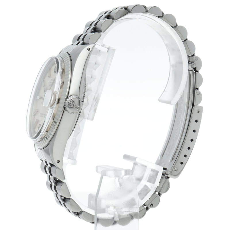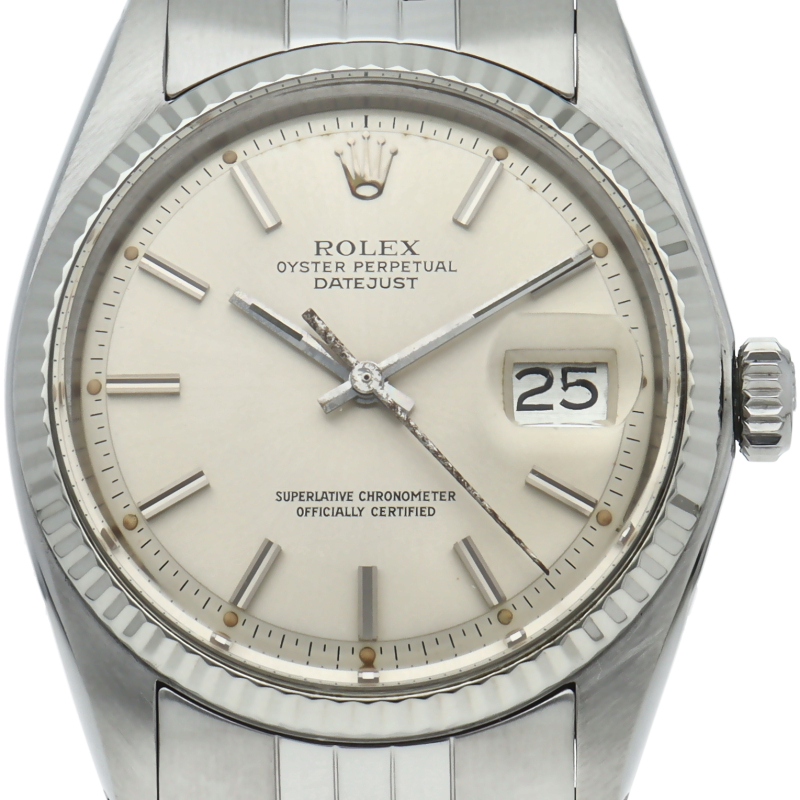 ロレックスのドレスウォッチの王道「デイトジャスト」。ホワイトゴールドとステンレスの組み合わせが高級感を感じさせる1本です。プラスチック風防仕様。
