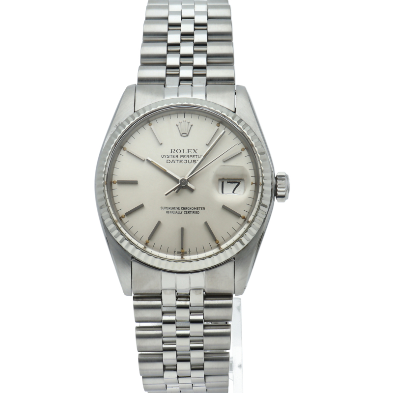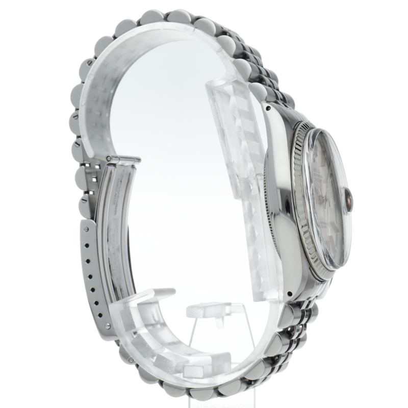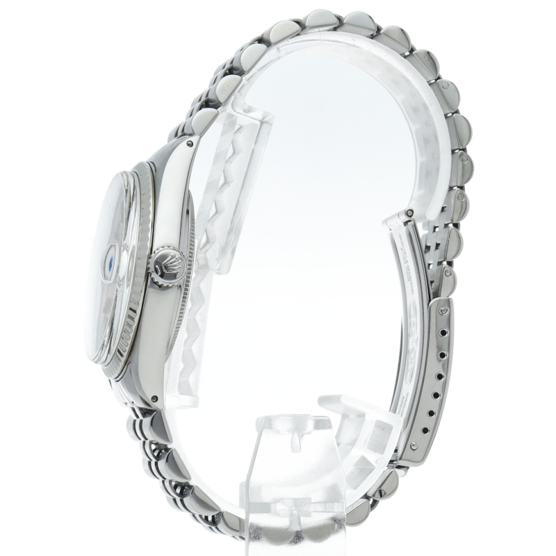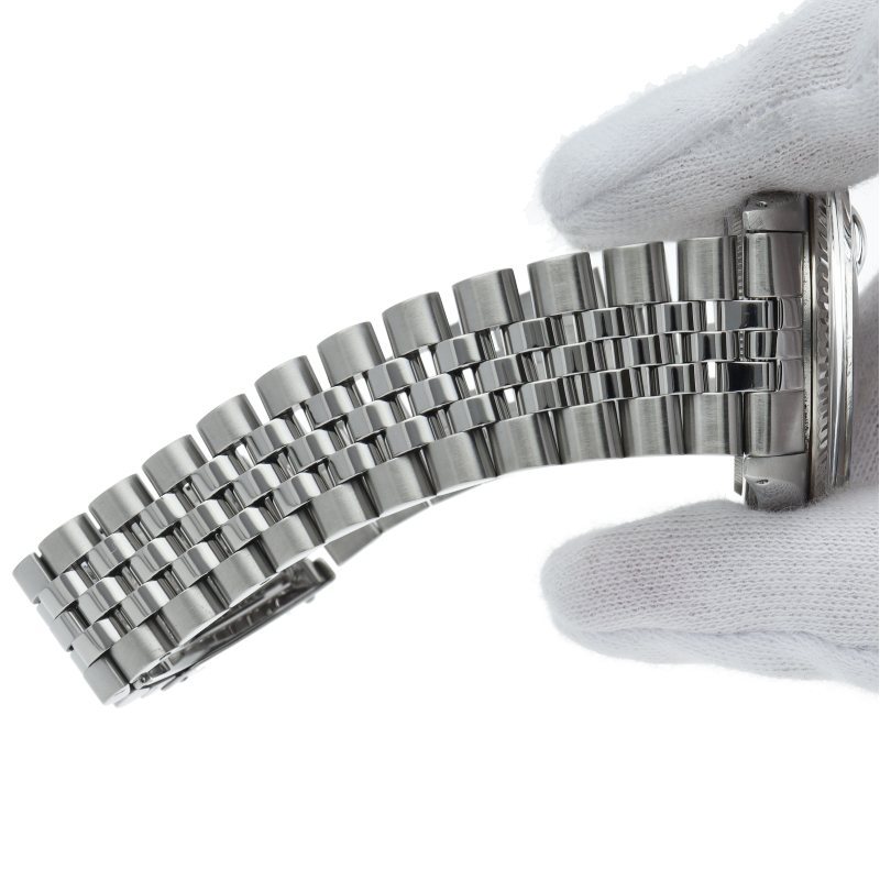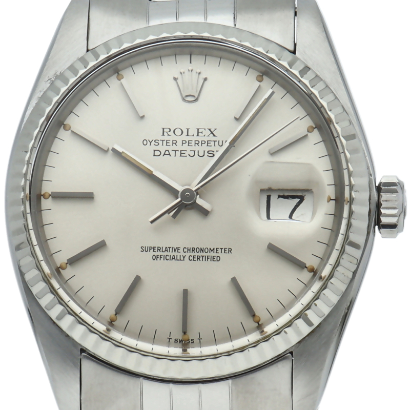 ロレックスのドレスウォッチの王道「デイトジャスト」。ホワイトゴールドとステンレスの組み合わせが高級感を感じさせる1本です。プラスチック風防仕様。